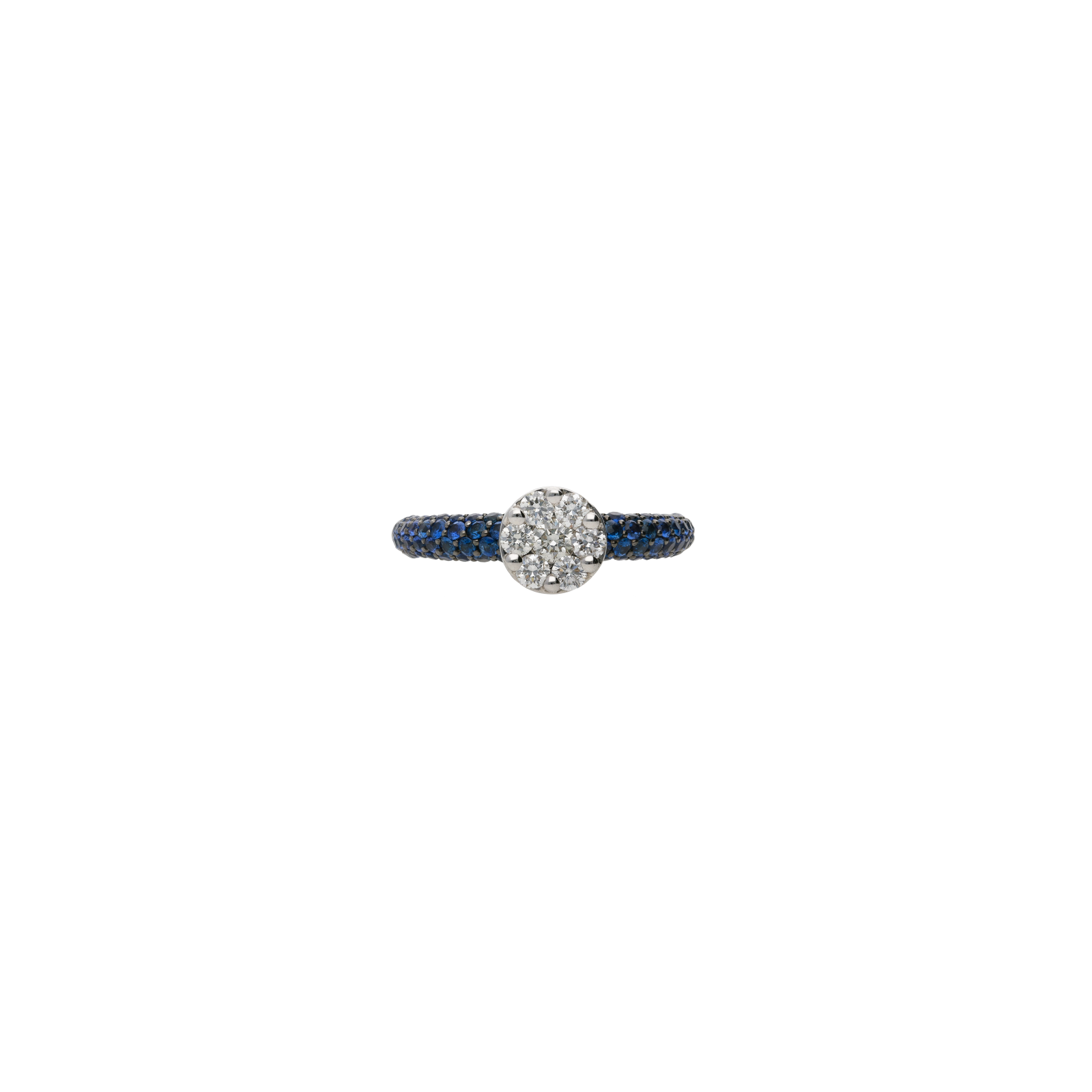 Anello in oro bianco con rosetta in diamanti e zaffiri blu - VR09199SBDW
