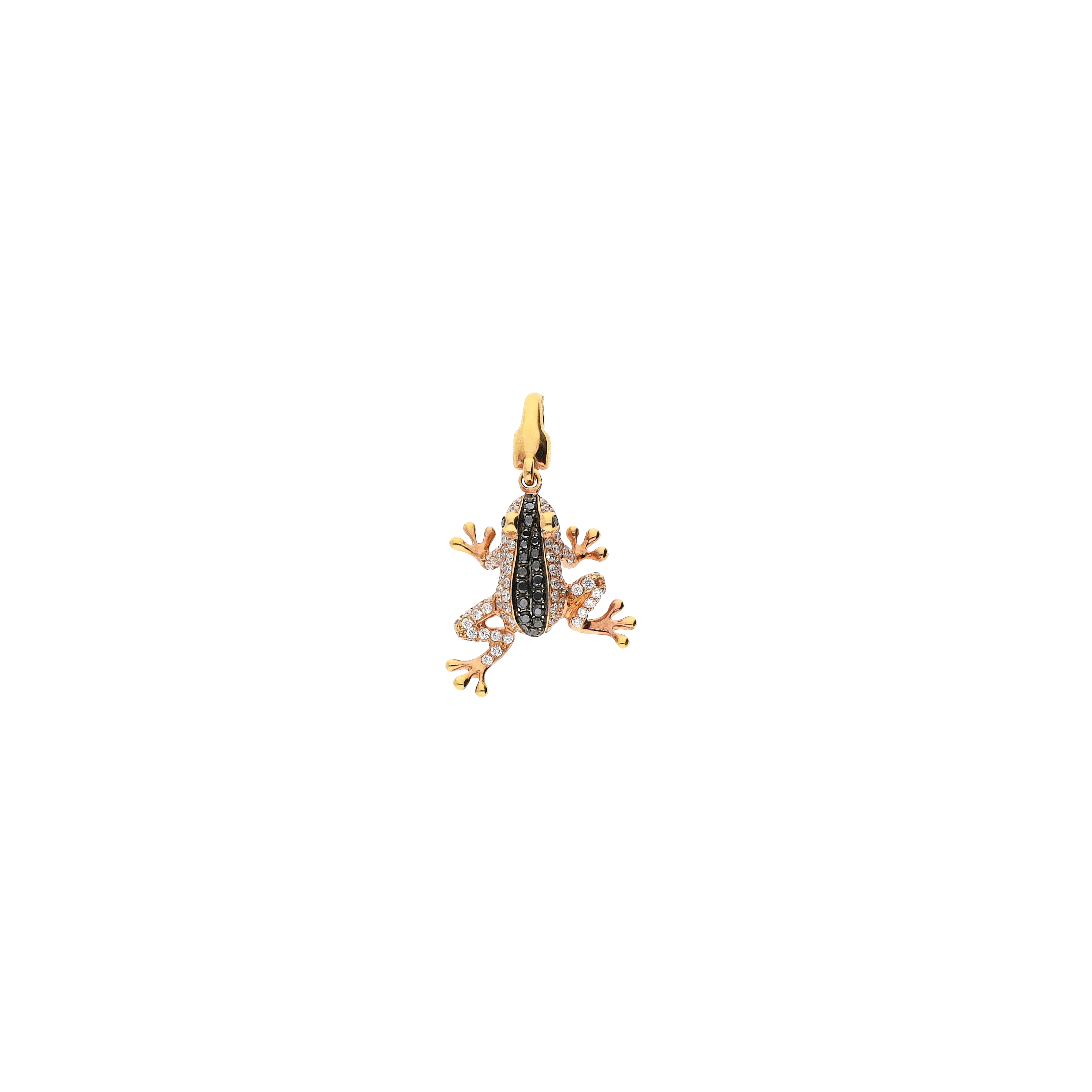 Ciondolo rana in oro rosa con pavè didiamanti bianchi e neri - VC21481DDKP
