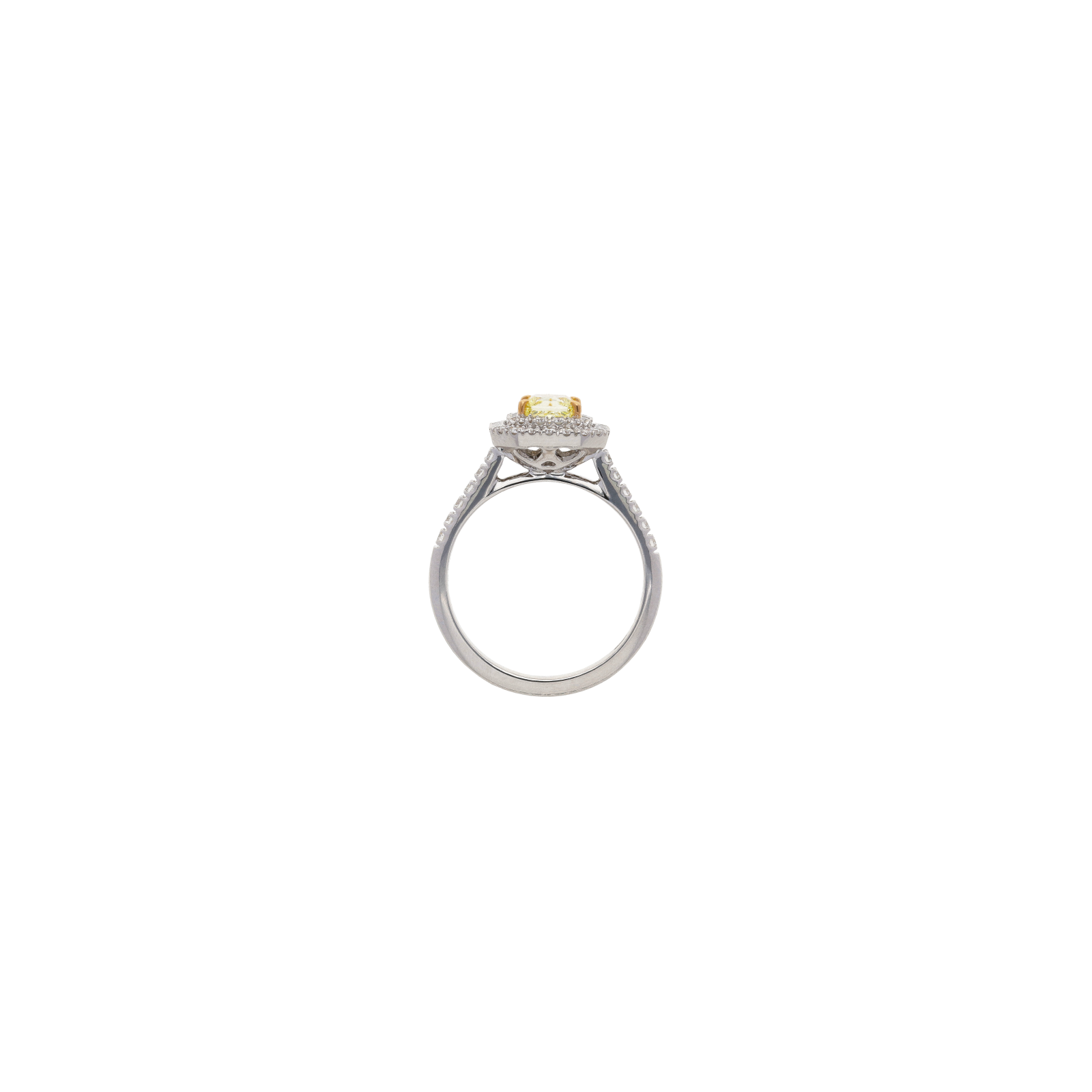Anello solitario in oro bianco con diamante fancy yellow e pavé di diamanti bianchi - 234-6830