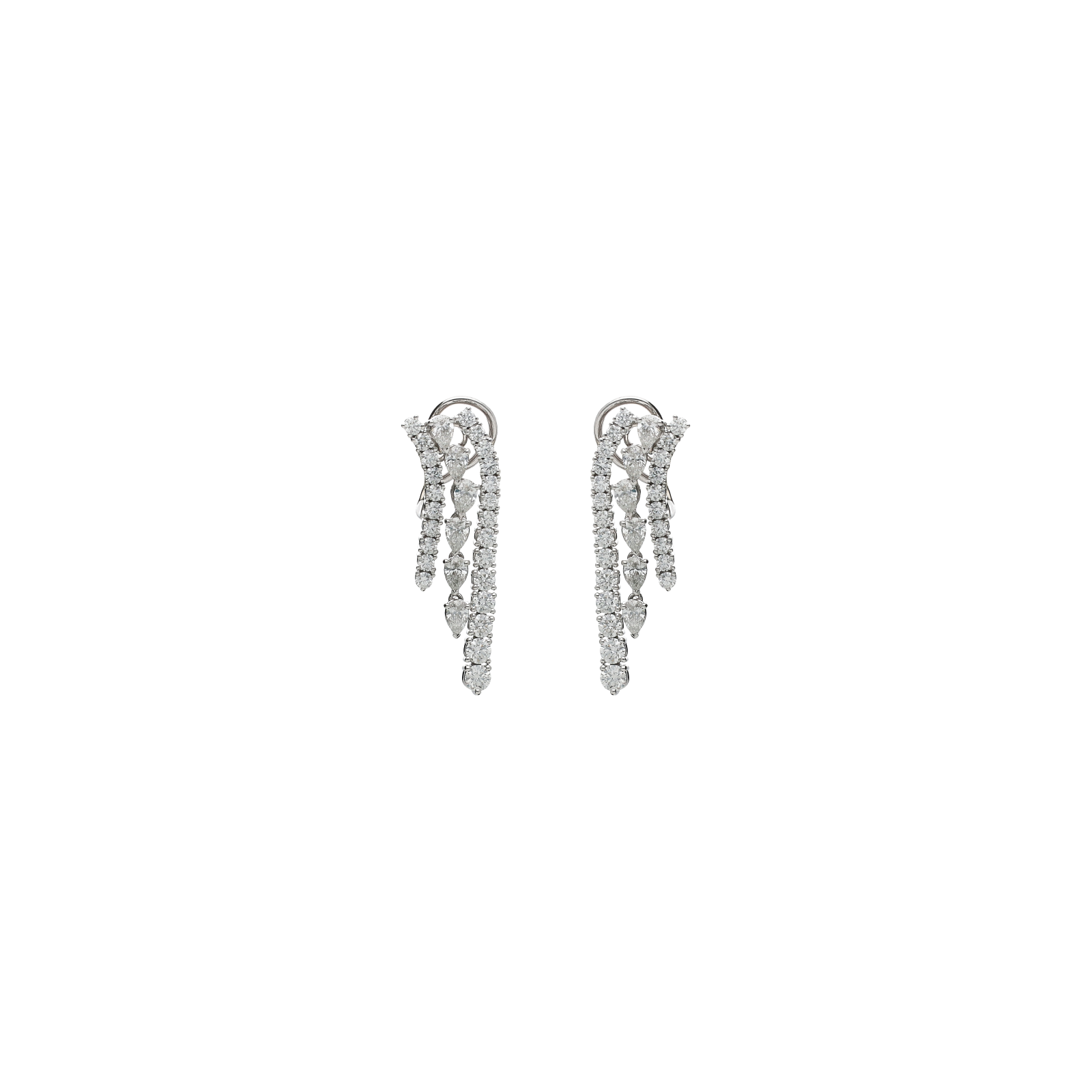 Orecchini pendenti a cascata in oro bianco con pavé di diamanti bianchi - 171-2952