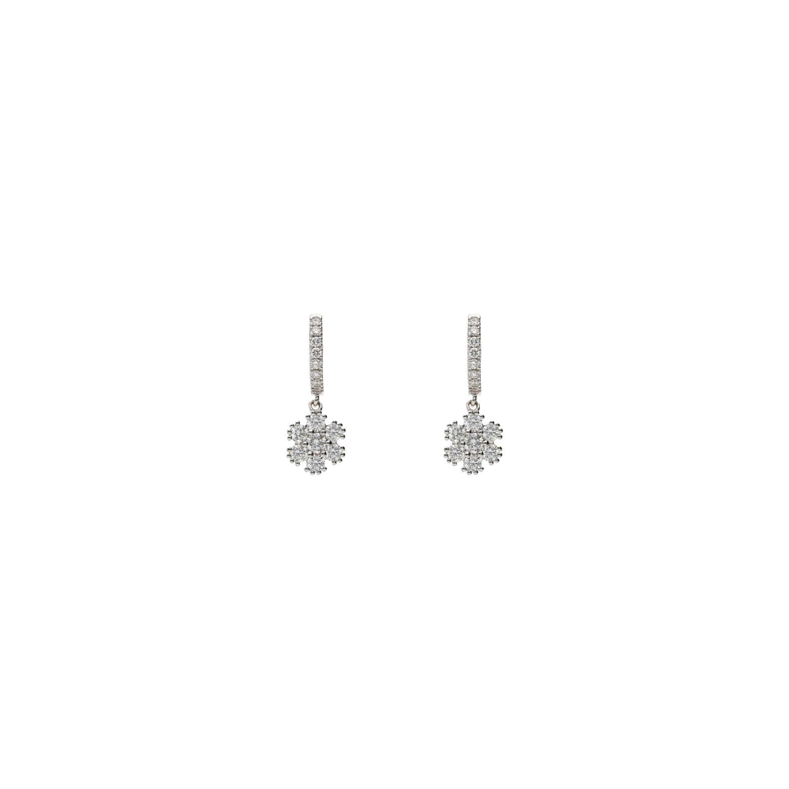 Orecchini cerchietto con fiore pendente in oro bianco e pavé di diamanti - 326-BO-101