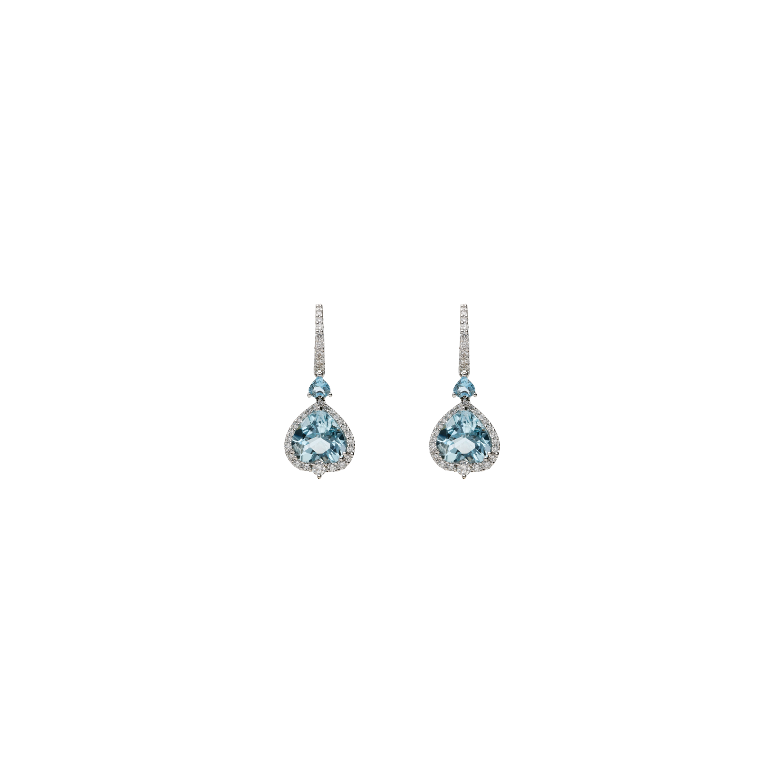 Orecchini in oro bianco con acquamarina cuori pendenti e pavé di diamanti - 372-3478