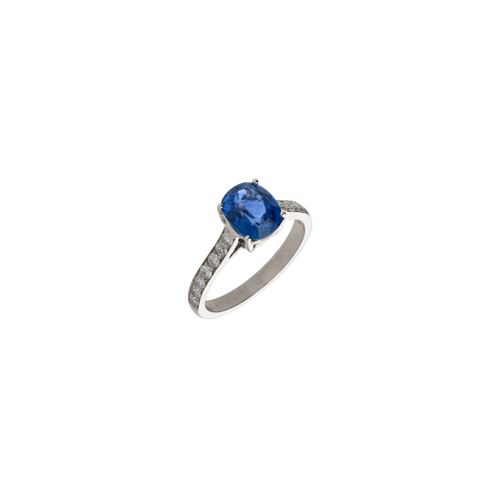 Anello in oro bianco 18 carati con zaffiro blu taglio ovale e diamanti bianchi taglio brillante