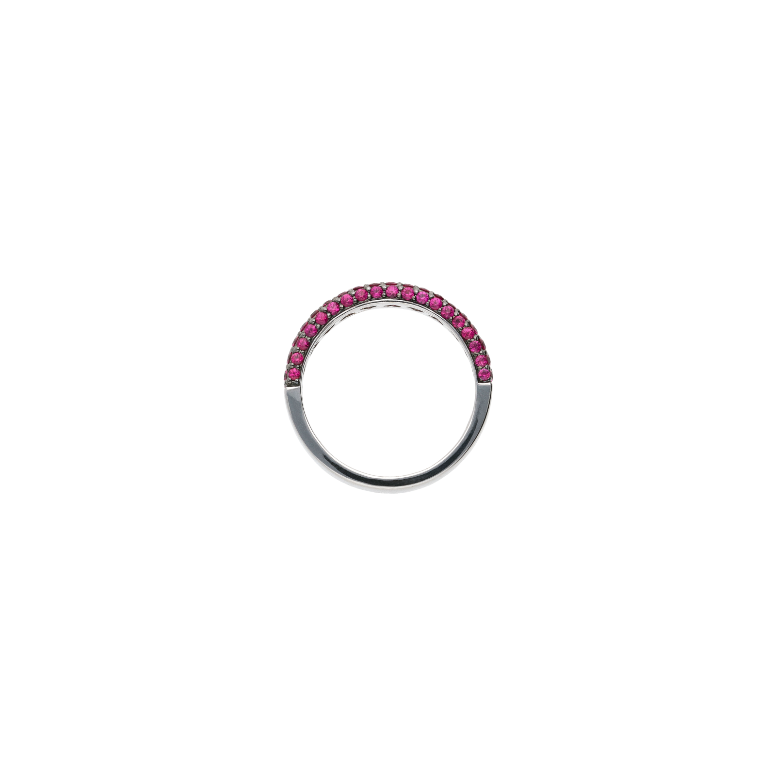 Anello a fascia in oro bianco con demi-pavè di rubini - VR09516RUW