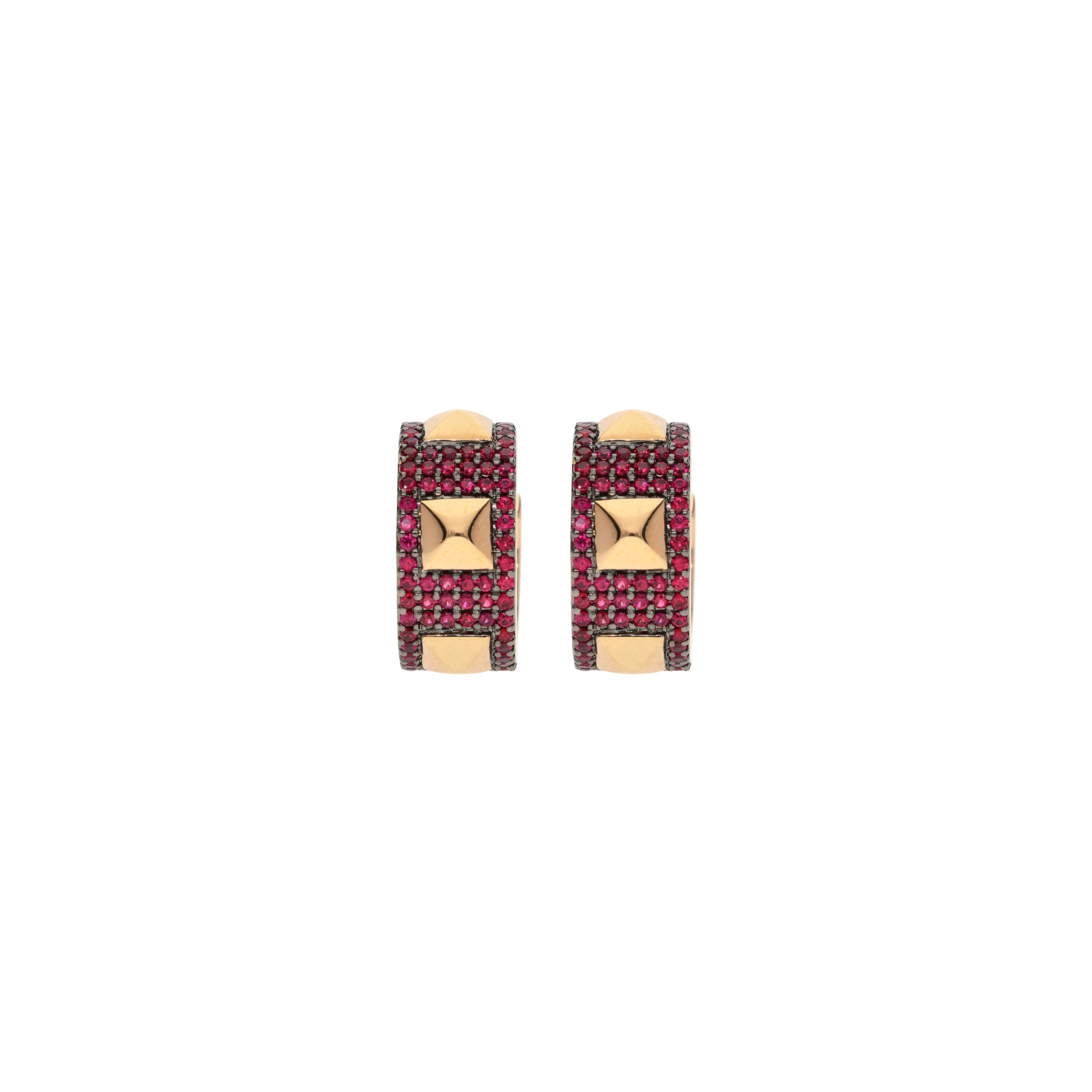 Orecchini collezione piramidi cerchio piccolo in oro rosa e pavé di rubini taglio brillante