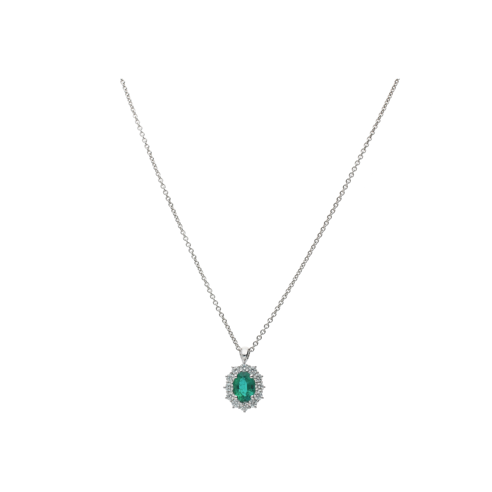 Collana in oro bianco con smeraldo e diamanti bianchi - 024-C2062