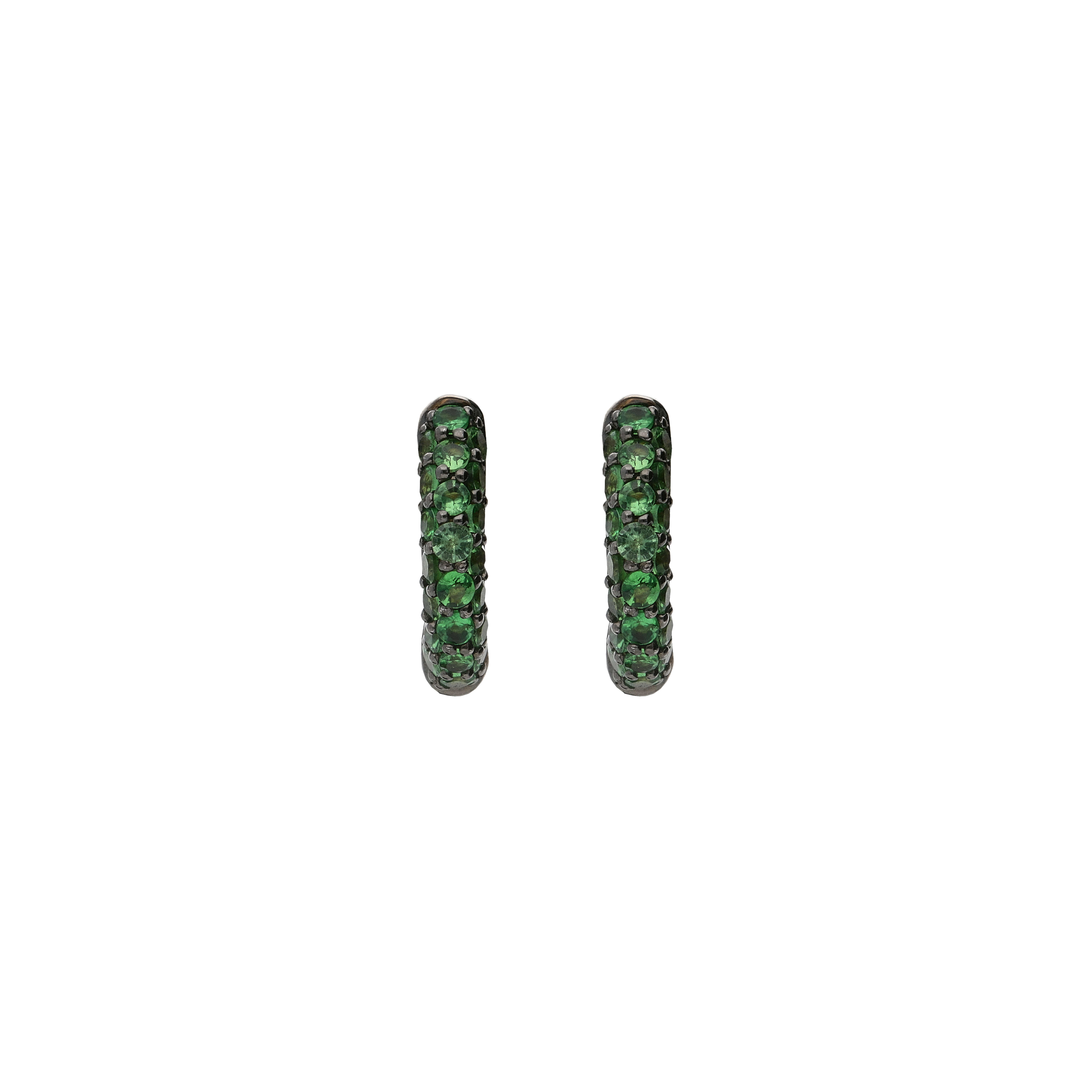 Orecchini a cerchio piccolo in oro bianco con demi-pavè di tsavoriti - VE08958TSW