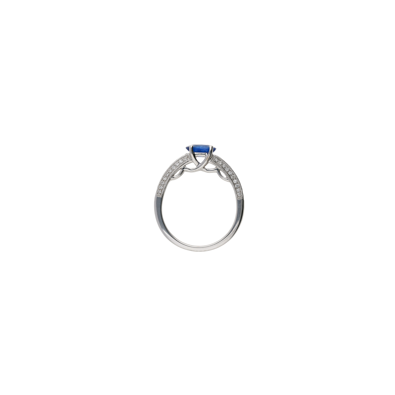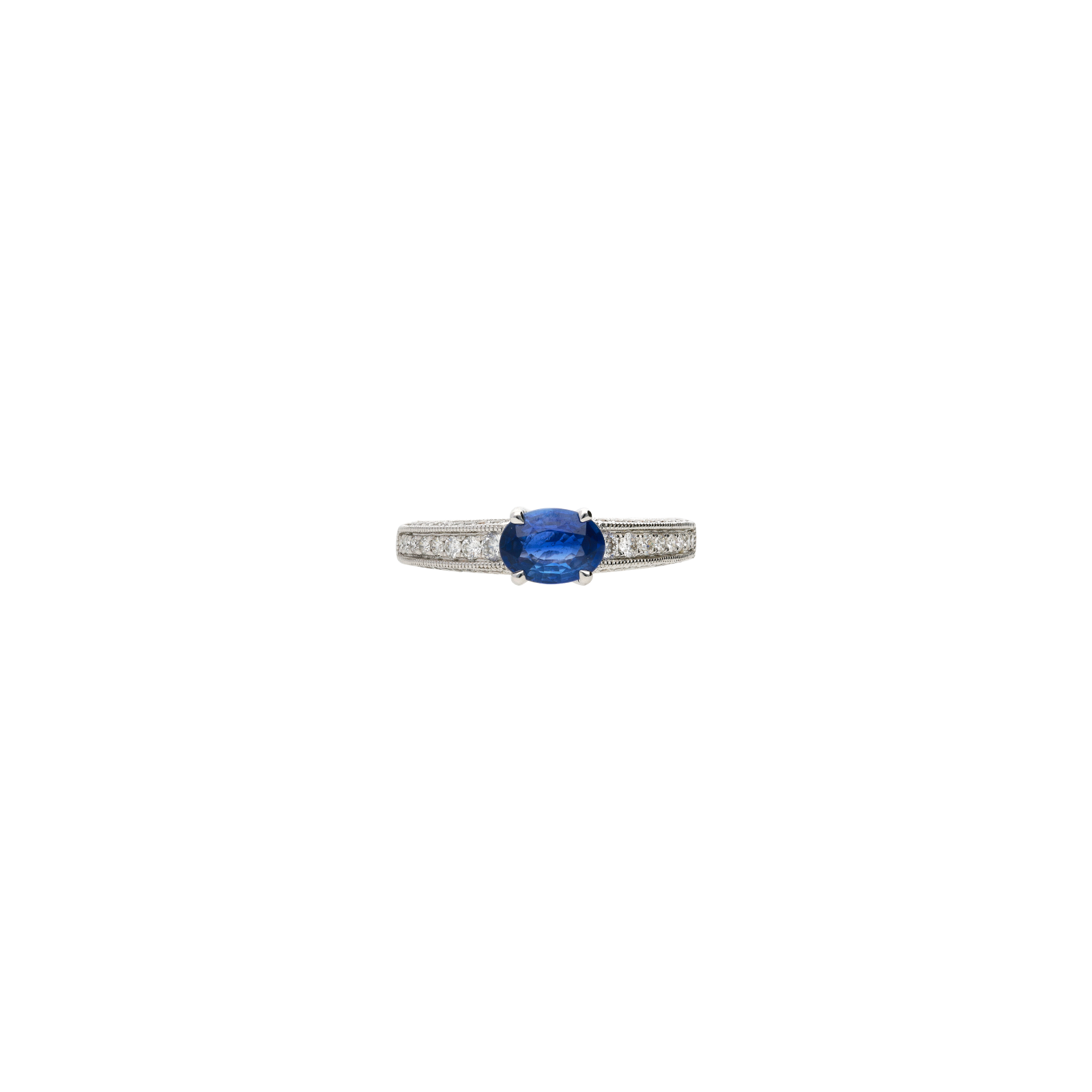 Anello in oro bianco 18 carati con zaffiro blu taglio ovale e diamanti bianchi taglio brillante