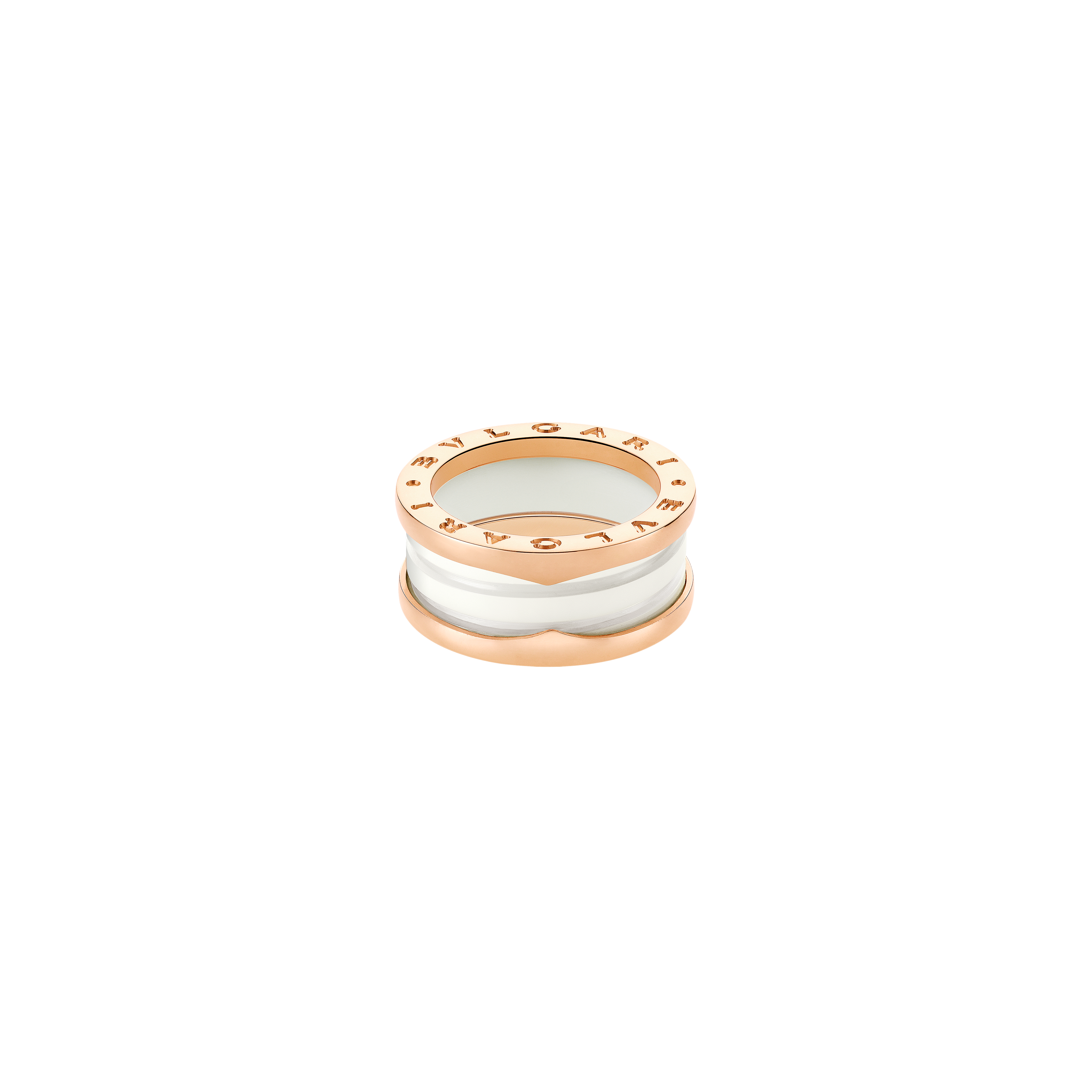 Ispirato all’anfiteatro più famoso al mondo, il Colosseo, l'anello B.ZERO1 è una suprema attestazione del talento creativo di Bulgari. Con la purezza del suo design, che rievoca la magnificenza della città eterna, la spirale rappresenta la perfetta armonia tra passato, presente e futuro ed è un emblema dello spirito pionieristico che anima la collezione. Anello B.ZERO1 in oro rosa 18 kt e ceramica bianca.