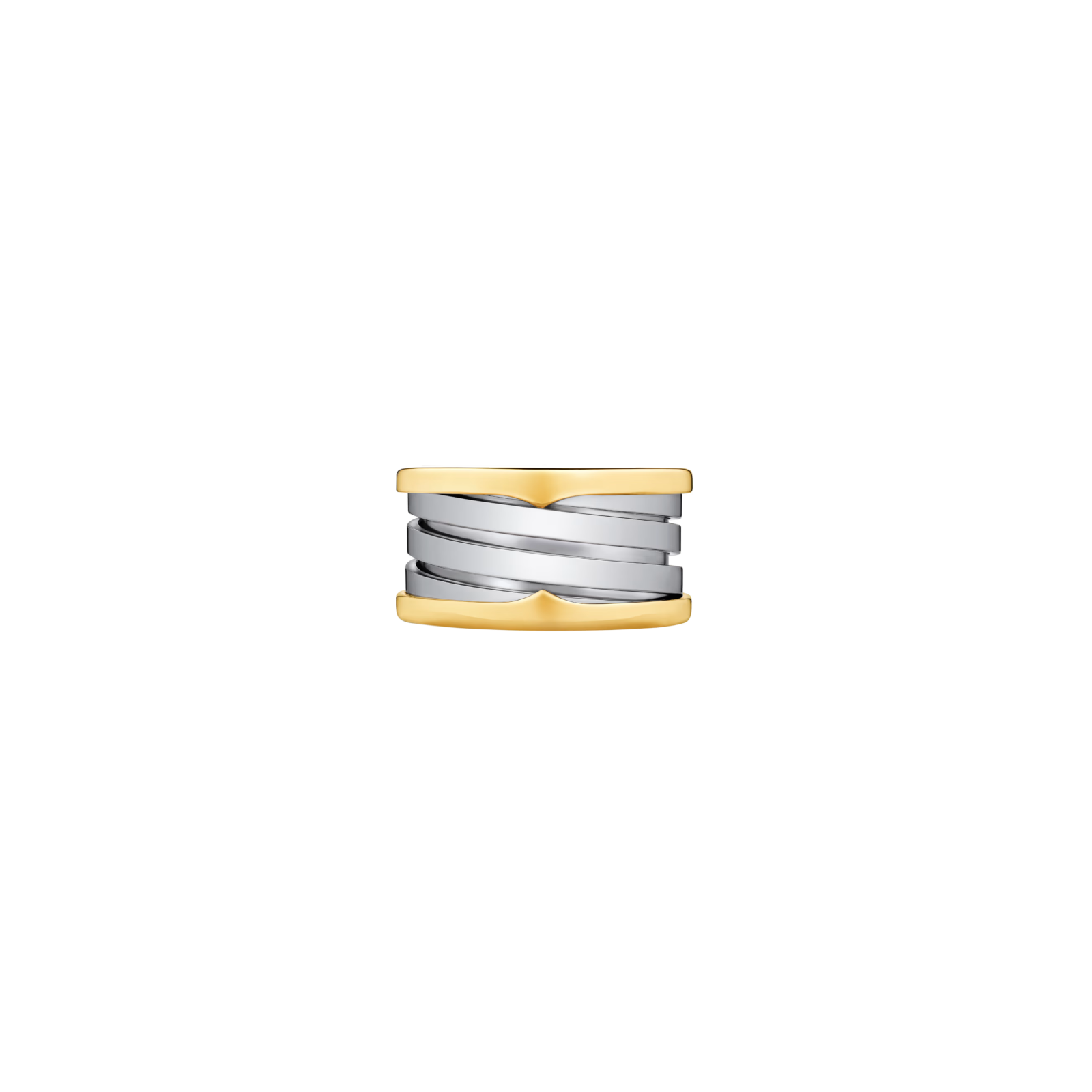 Vera icona del design contemporaneo sin dal 1999, B.zero1 sfida ogni tendenza e convenzione con il suo perfetto connubio tra ispirazione romana, designe maestria all’avanguardia. Attingendo ai pionieristici codici estetici della Maison e alle sue inedite combinazioni di materiali, l'anello a quattro fasce B.zero1 Gold & Steel unisce al nobile splendore dell’oro giallo 18 kt il fascinodell’acciaio. Un’audace espressione di libertà creativa e abilità ingegneristica, che incarna alla perfezione lo spirito innovativo della collezione. Anello a quattro fasce B.zero1 in oro giallo 18 kt e acciaio inossidabile. L'acciaio utilizzato per i gioielli Bvlgari è una lega ipoallergenica, con un rilascio di nichel pienamente conforme ai limiti di legge. Se ne sconsiglia l'uso a chi è affetto da gravi allergie al nichel o a chi desidera un gioiello privo di nichel al.