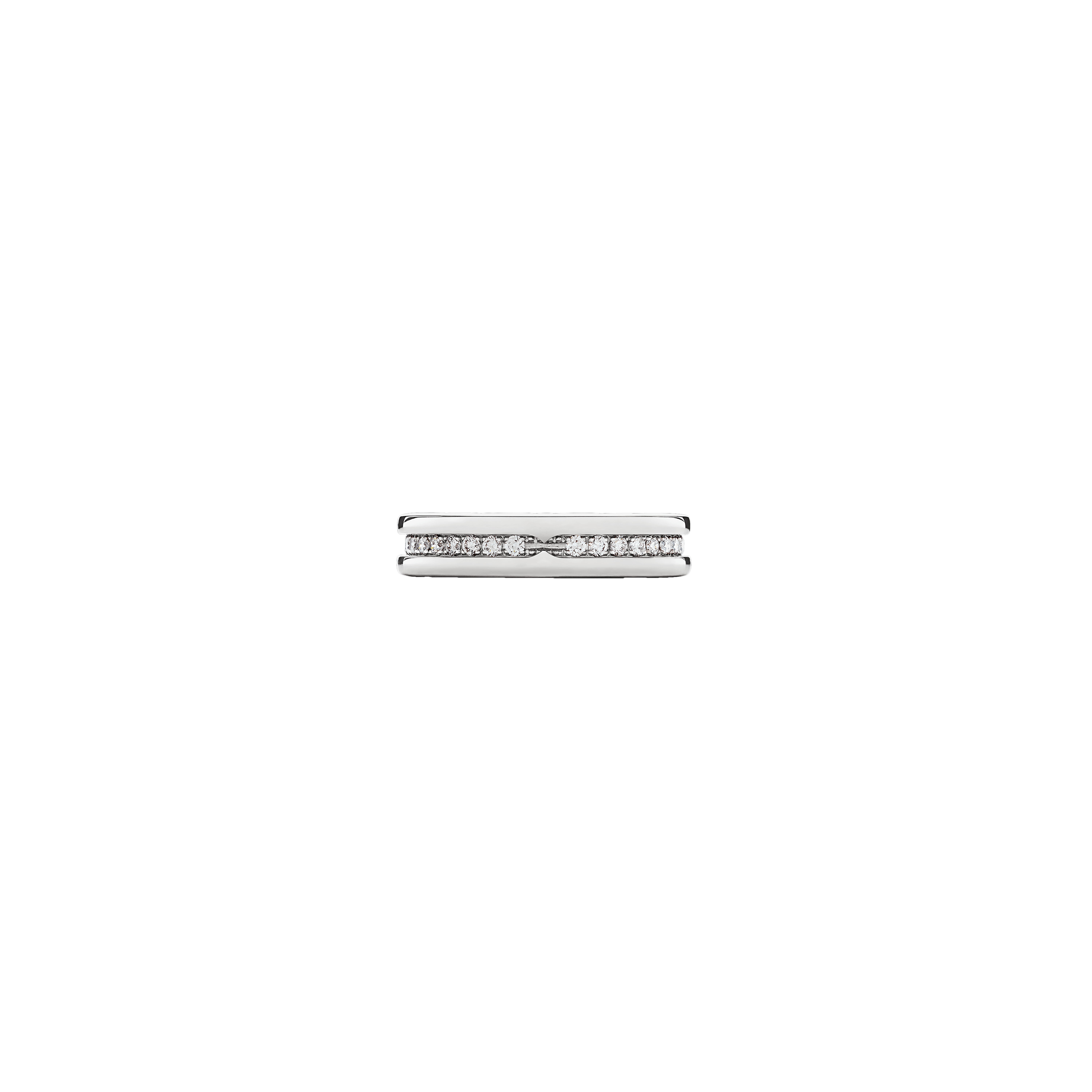 Con la purezza del suo design, che rievoca la magnificenza della città eterna, la spirale rappresenta la perfetta armonia tra passato, presente e futuro ed è un emblema dello spirito pionieristico che anima la collezione. Anello B.ZERO1 a una fascia in oro bianco 18 KT con pavé di diamanti. Prezzo variabile a seconda della misura.