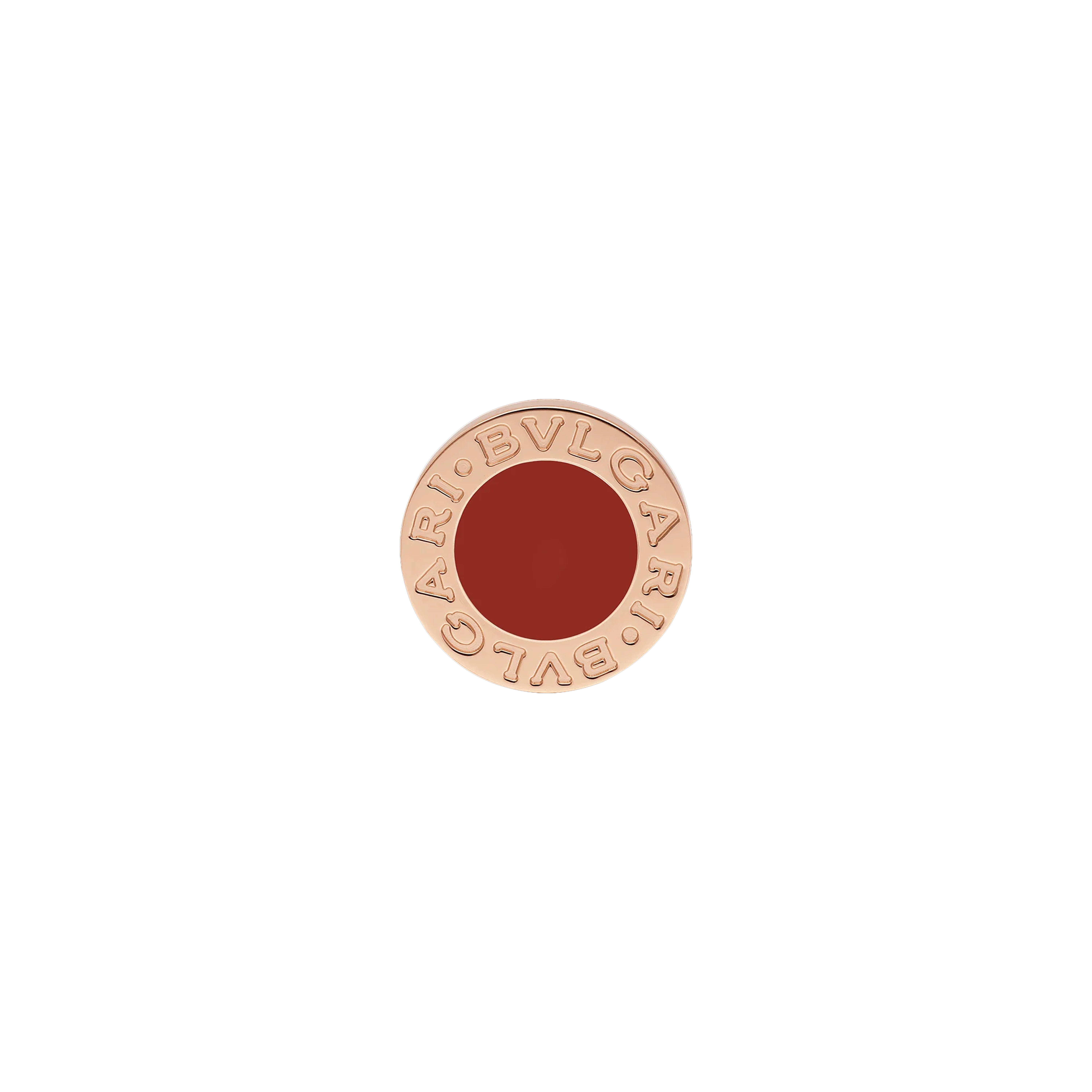 Rievocando le origini romane della maison, l'orecchino singolo BVLGARI BVLGARI dà vita a un sofisticato connubio tra tradizione e modernità. Ispirato alle iscrizioni incise lungo il bordo delle antiche monete romane, l'iconico doppio logo si rivela in nuove accattivanti rivisitazioni dall'eleganza contemporanea. In linea con lo spirito dinamico che anima la collezione, l'orecchino può essere abbinato liberamente scegliendo tra una varietà di gemme e combinazioni cromatiche differenti. Per uno stile unico e originale. Orecchino singolo BVLGARI BVLGARI in oro rosa 18 KT e corniola.