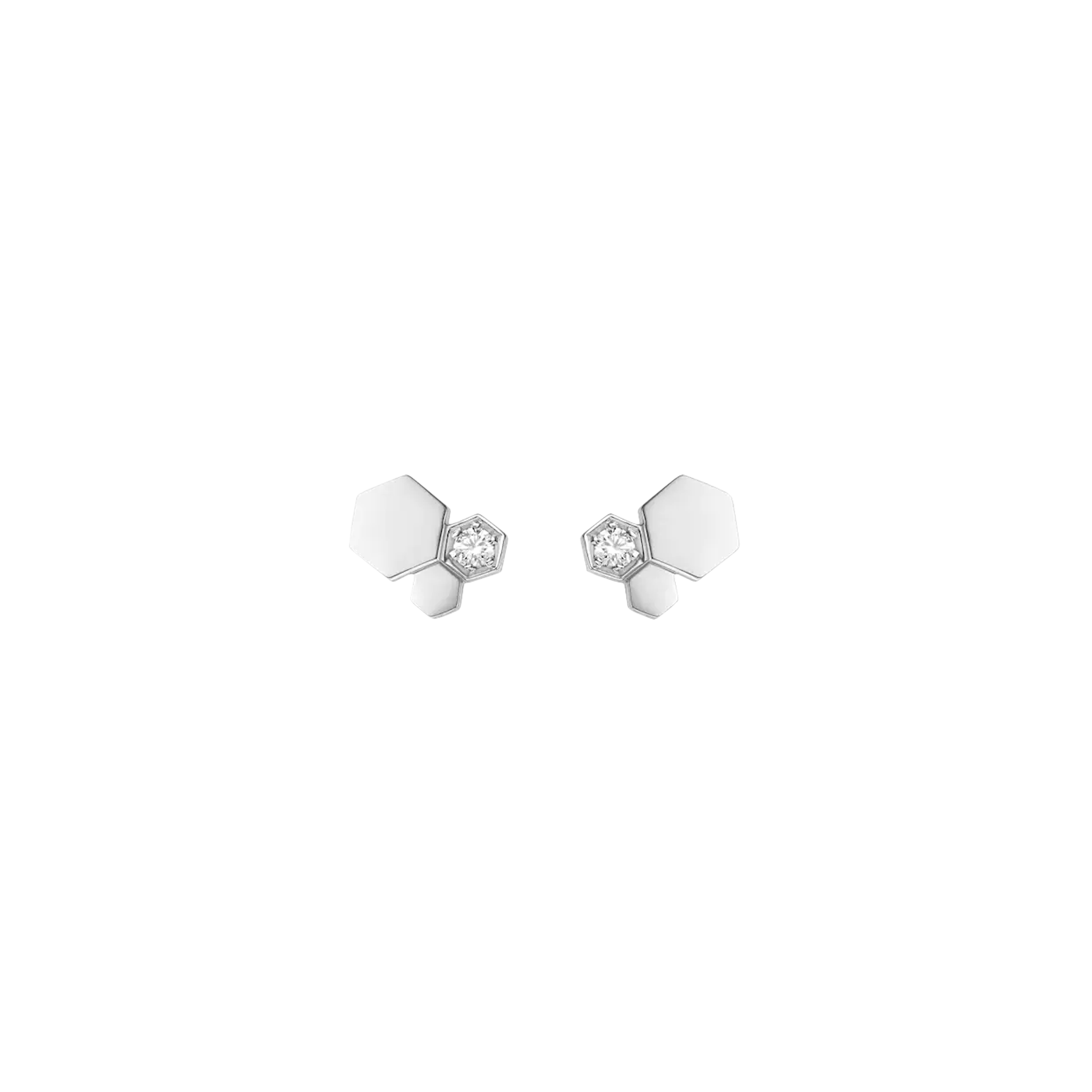 Una reinterpretazione grafica dei gioielli del favo, Bee My Love offre una versione decisamente moderna del simbolo imperiale dell'ape. Chi indossa queste creazioni geometriche plasmate in oro trasmette istantaneamente un'aria assertiva di femminilità regale. Orecchini in oro bianco 18 cafatoi con diamanti bianchi taglio brillante.