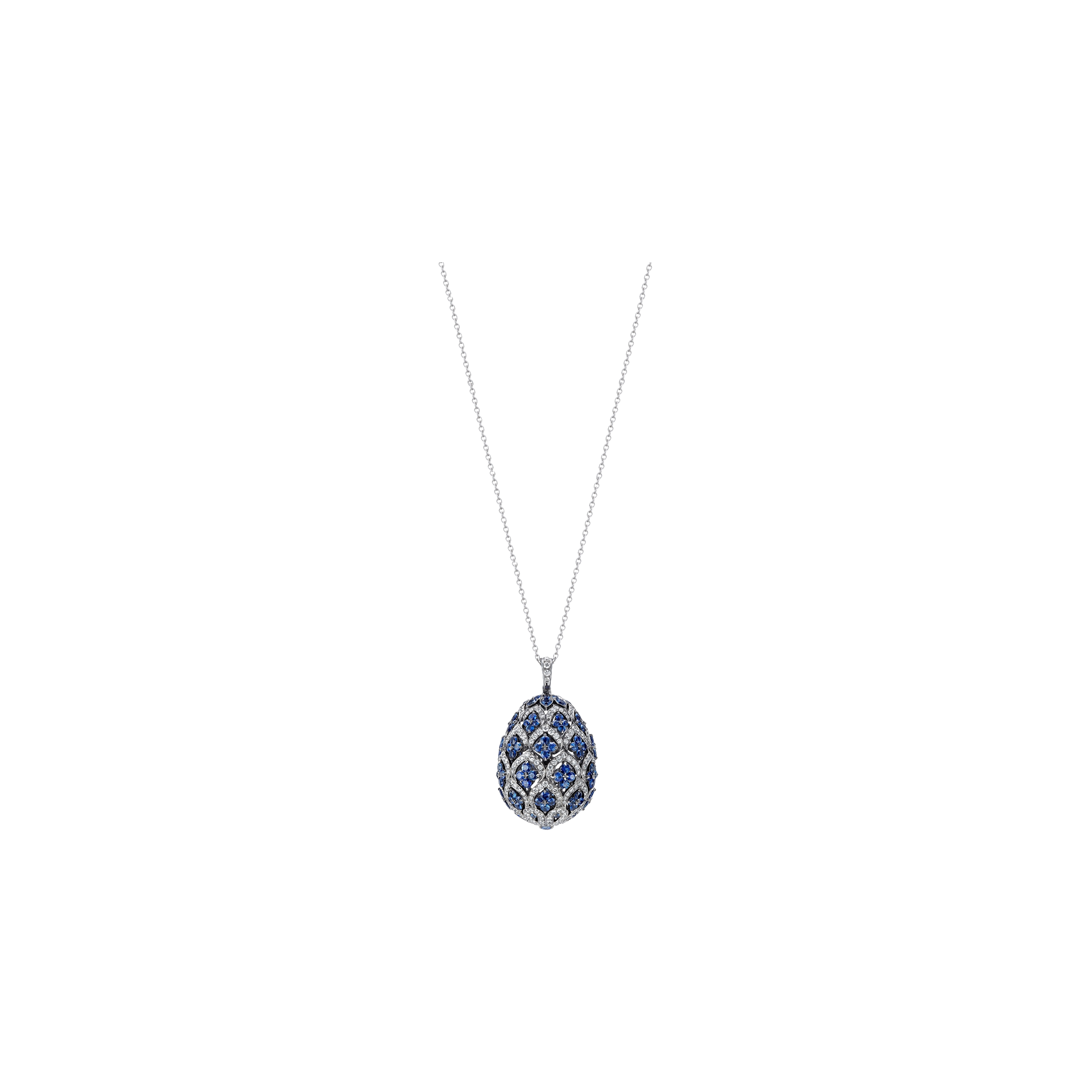 Ovetto fabergé imperiale zenya in oro bianco con diamanti e zaffiri blu - 179FP1088