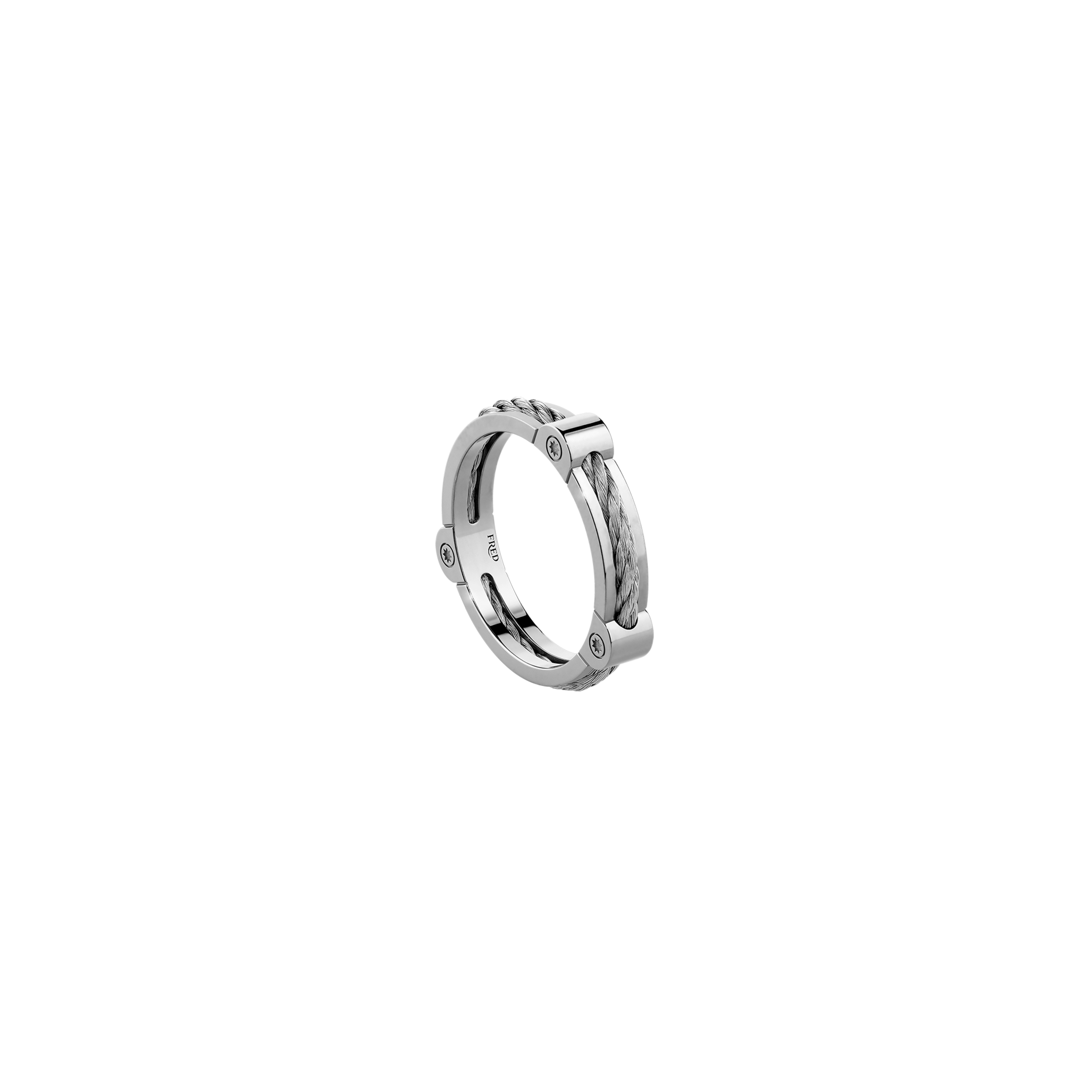 Anello in oro bianco 18K con cordino in acciaio. Larghezza dell'anello: 4 mm