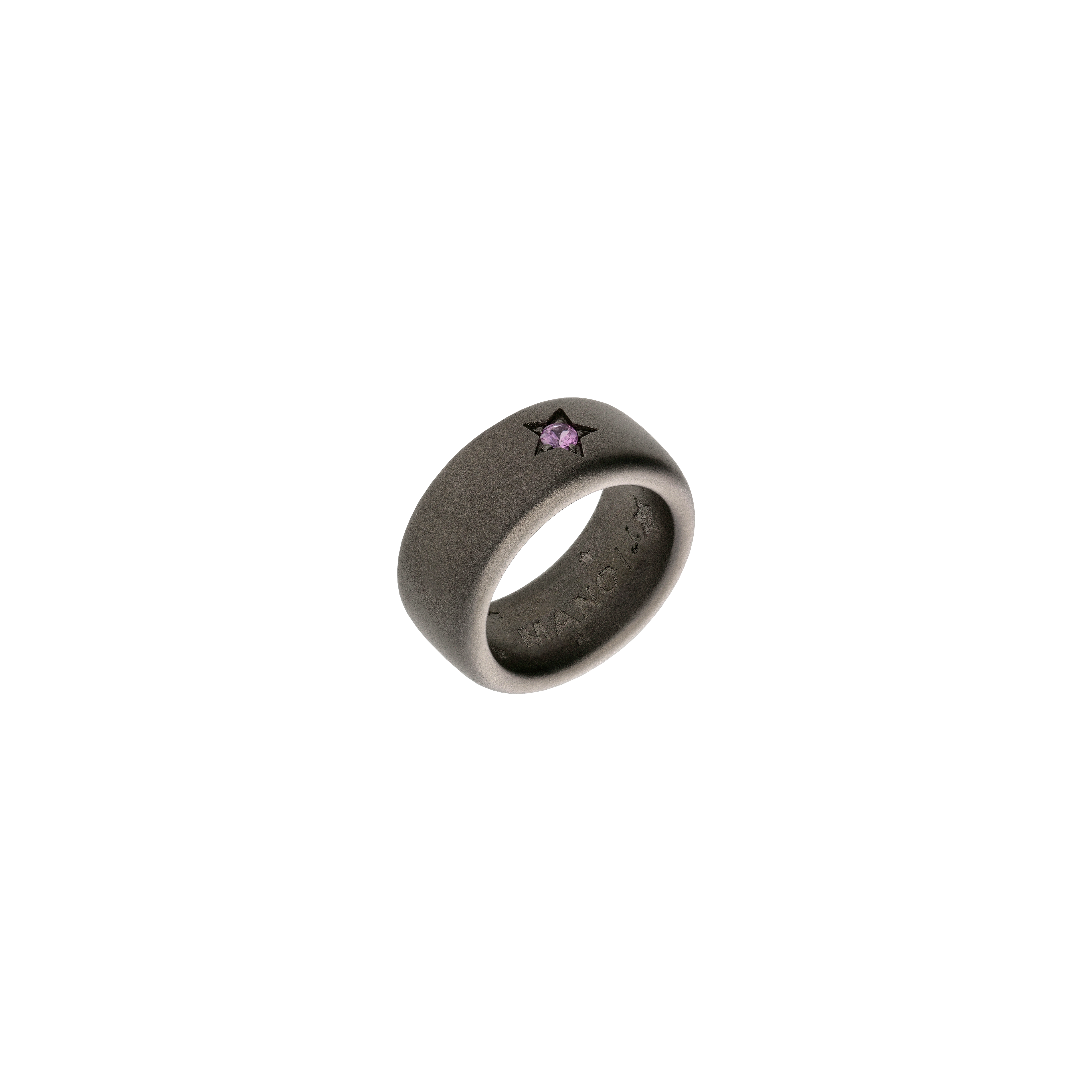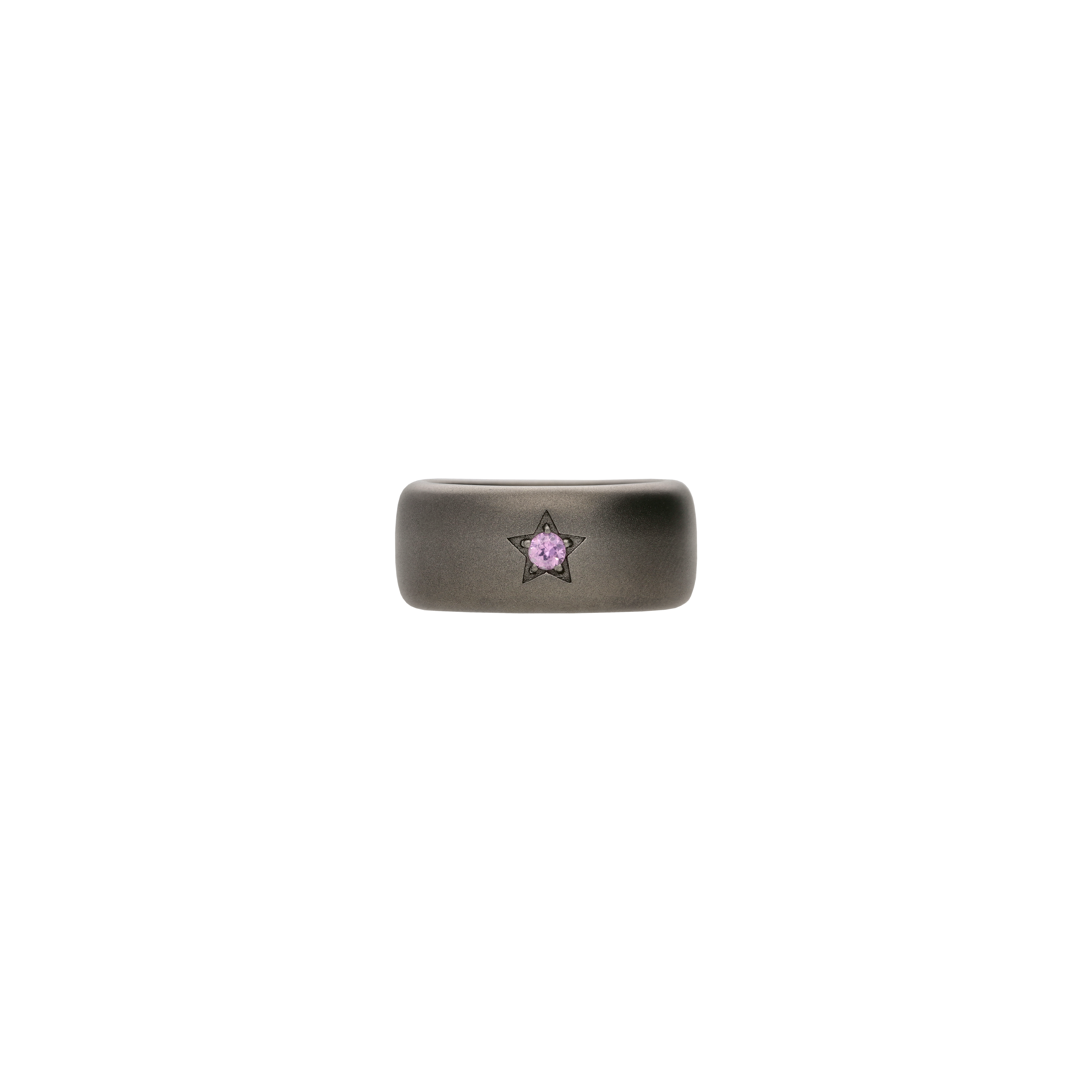 Anello a fascia bombata in titanio sabbiato e zaffiro rosa - SSOL2ZRO