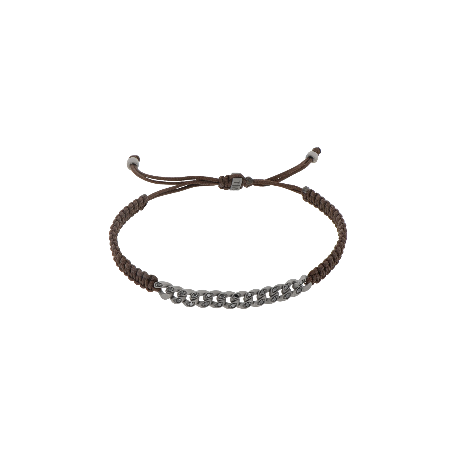 Bracciale groumette nautica mini in titanio con diamanti black e laccio mocha intrecciato - BRG3002
