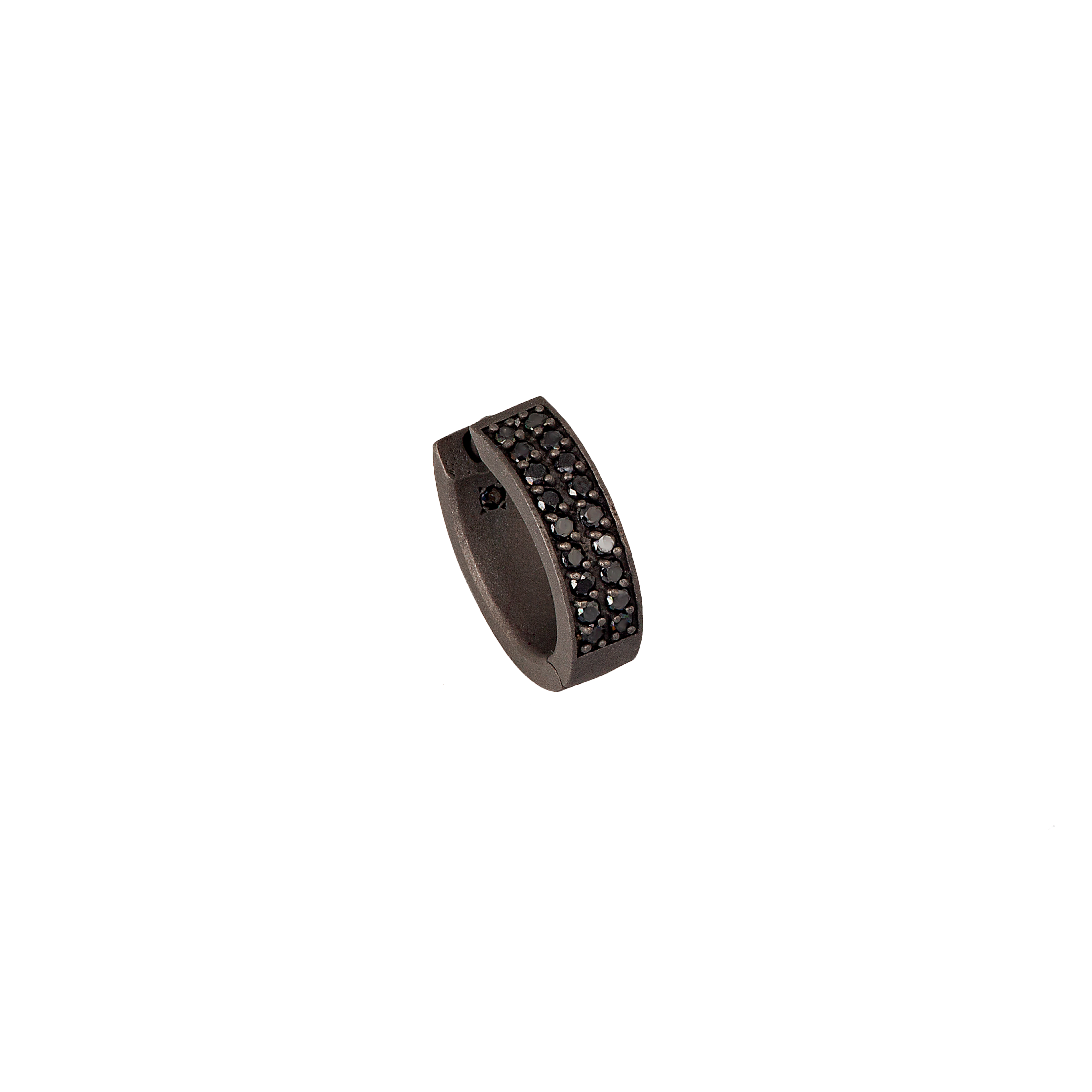 Orecchino uomo a cerchietto singolo minimal in titanio e 2 file di diamanti black - minortb2f - MINORTB2F