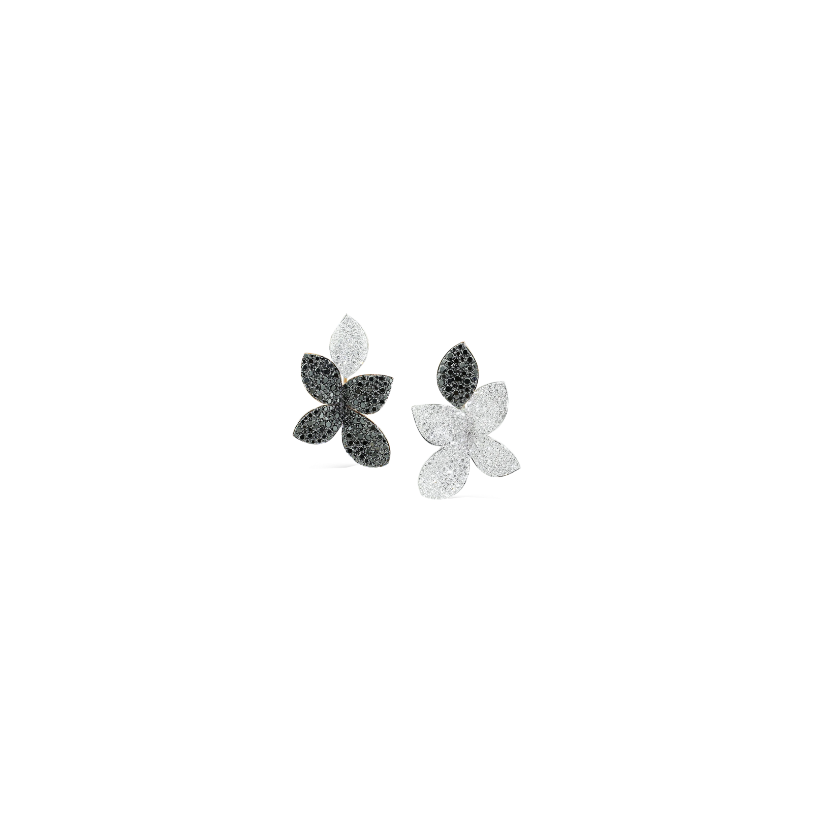 Orecchini giardini segreti in oro bianco con pavé di diamanti bianchi e diamanti neri - 16382BRN