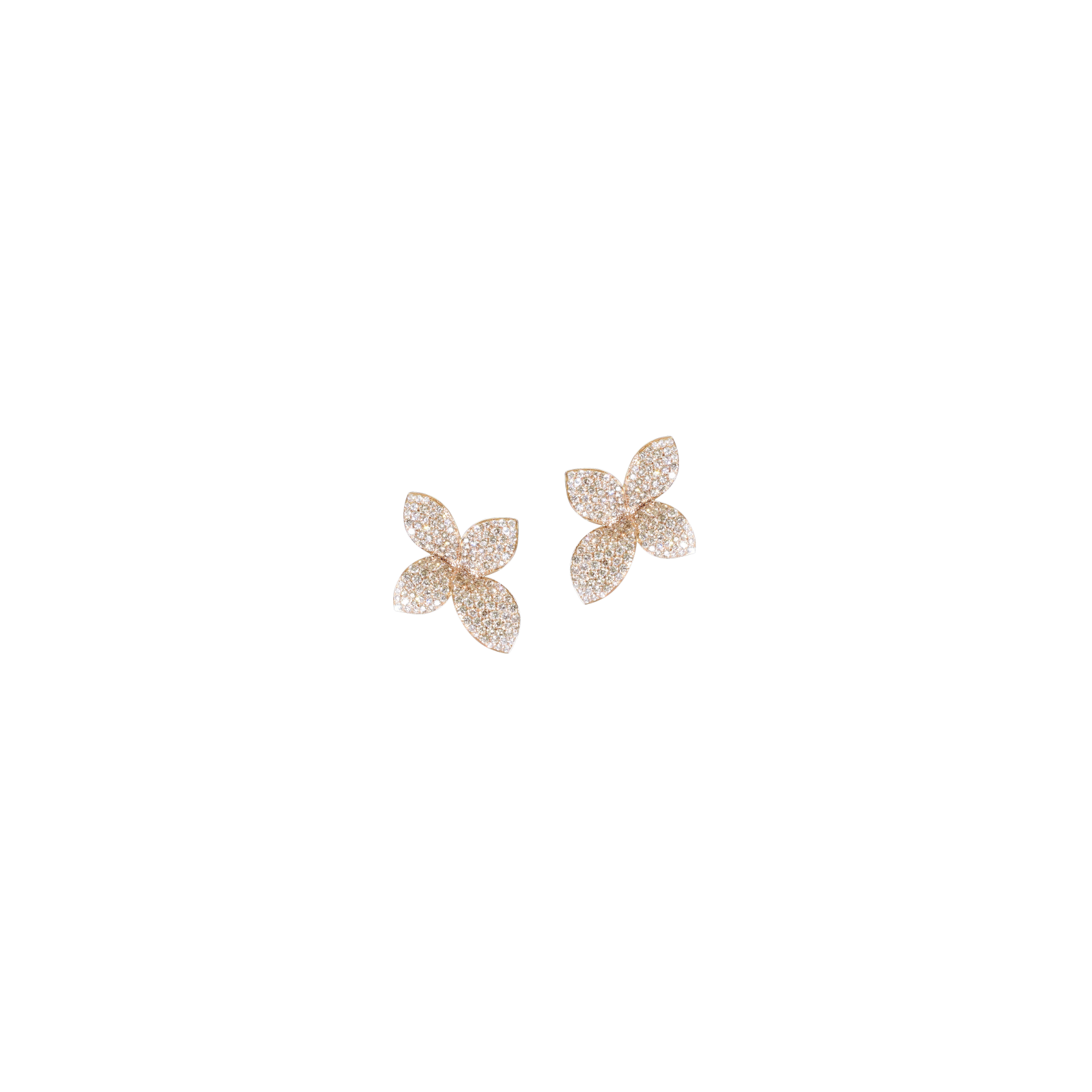 Orecchini fiore in oro bianco e pavè di diamanti - GIOR012146