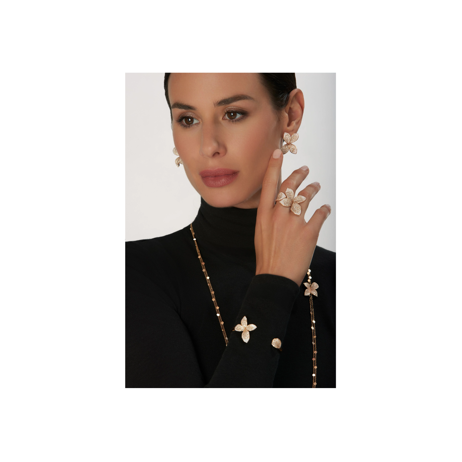 La seducente collezione di anelli si modella sulle mani per ottenere una vestibilità perfetta e sensuale in armonia con il corpo e i suoi movimenti. Le mani si vestono in modo insolito e intrigante per dare a ogni donna la possibilità di creare un giardino segreto tutto suo.