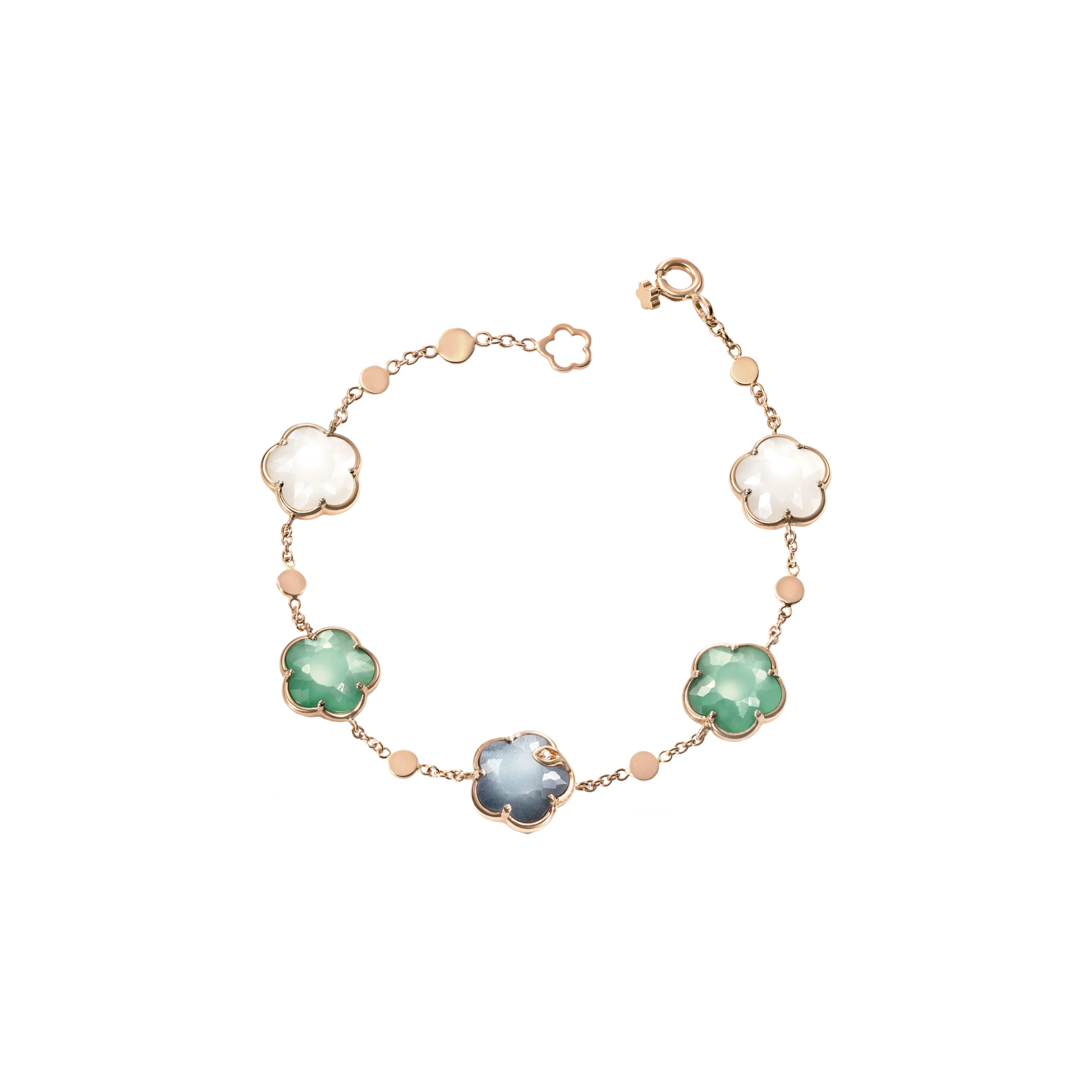 Una prima evoluzione legata alla linea riguarda la luna, la cui energia si esalta quando la pietra di luna incontra la forza delle altre pietre preziose: onice, agata verde, madreperla e calcedonio rosa. Gemme che ci invitano a vivere pienamente le emozioni, a liberarci e a riconnetterci con il nostro io interiore attraverso la bellezza. L'agata verde è la pietra di protezione e una rappresentazione della bellezza della creazione. La madreperla è la sublimazione dell'energia femminile. L'onice, una forza terrena, è un simbolo della determinazione e del coraggio femminile.