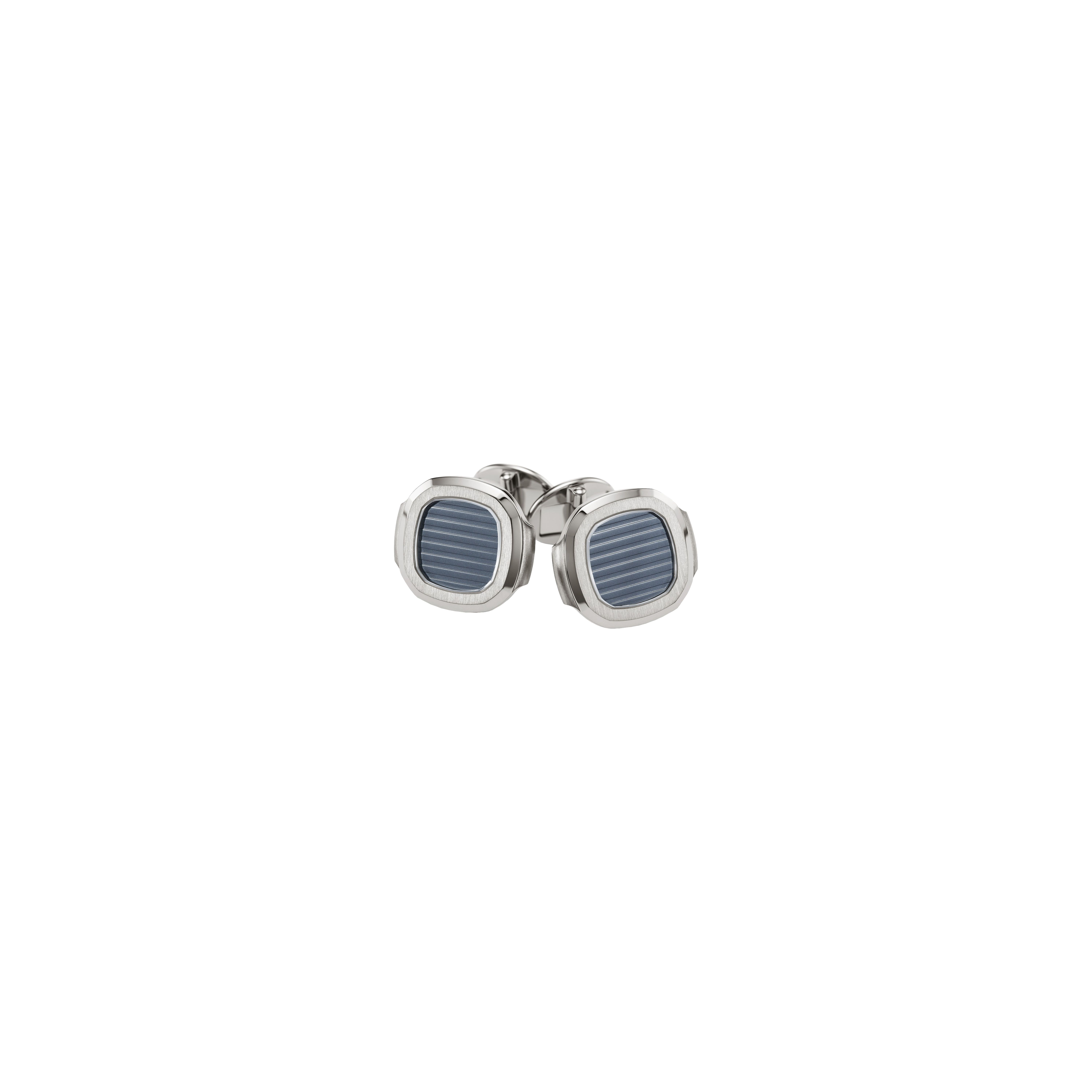 Gemelli da polso Nautilus. Centro blu-grigio opalino con motivo orizzontale inciso. In oro bianco 18 carati.