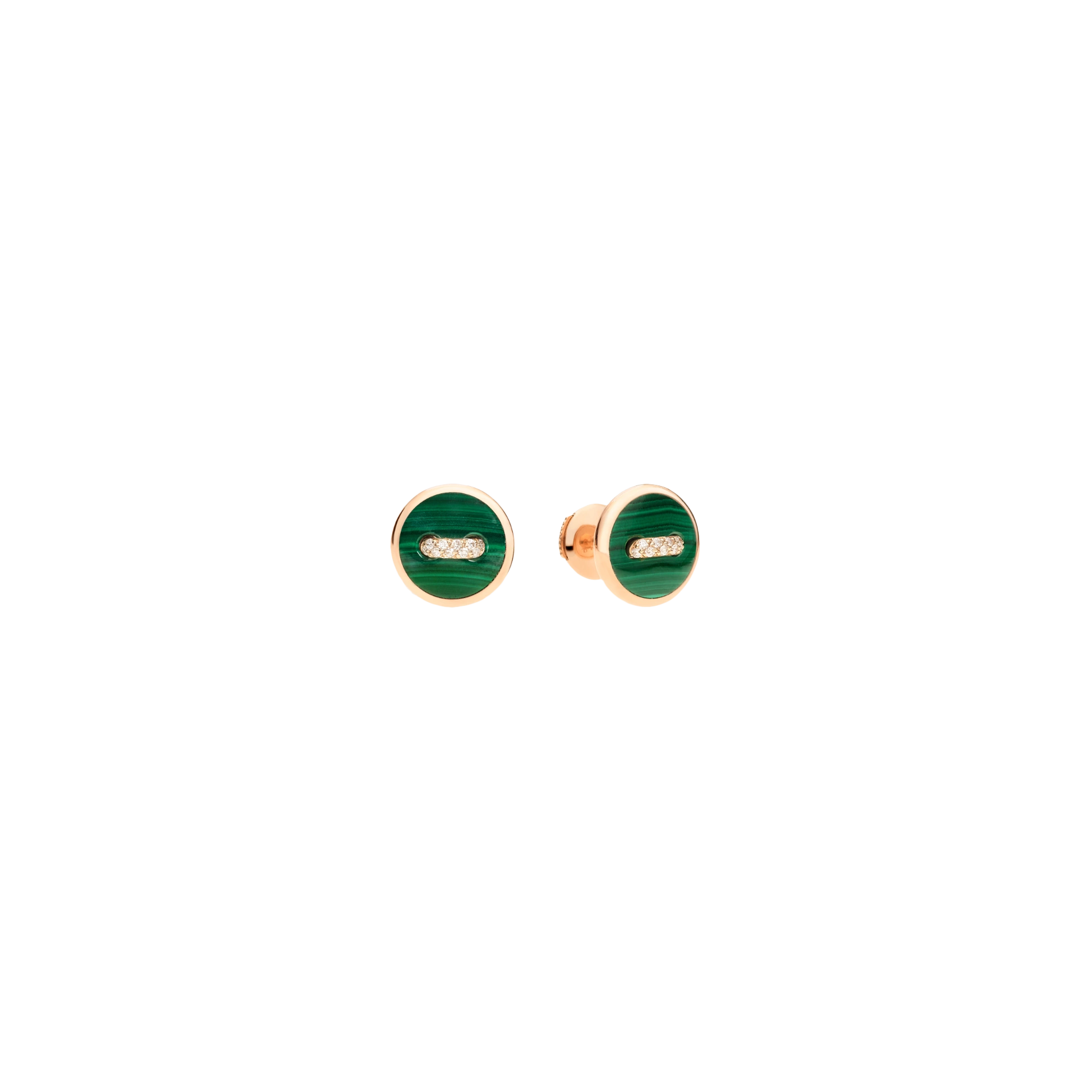 Pomellato presenta Pom Pom Dot, una nuova e gioiosa collezione di gioielli. Il design ispirato a un bottone, motivo già presente in una collana d'oro del 1974, viene reinterpretrato con un look fresco e divertente. Attingendo al significato storico del bottone, sia come accessorio funzionale che come talismano, la morbida silhouette arrotondata delle nuove creazioni diventa simbolo moderno di legame e protezione. Ogni gemma della collezione emana una forza positiva. Gli orecchini in malachite sprigionano un'energia armoniosa che favorisce la pace interiore e la speranza. Trasformato in un gioiello prezioso, Pom Pom Dot ci ricorda di apprezzare i piaceri semplici, quotidiani, che rendono la vita bella e felice. Orecchini in oro rosa 18K con 2 malachiti (≈3 ct) e 20 diamanti bianchi (≈0.07 ct).