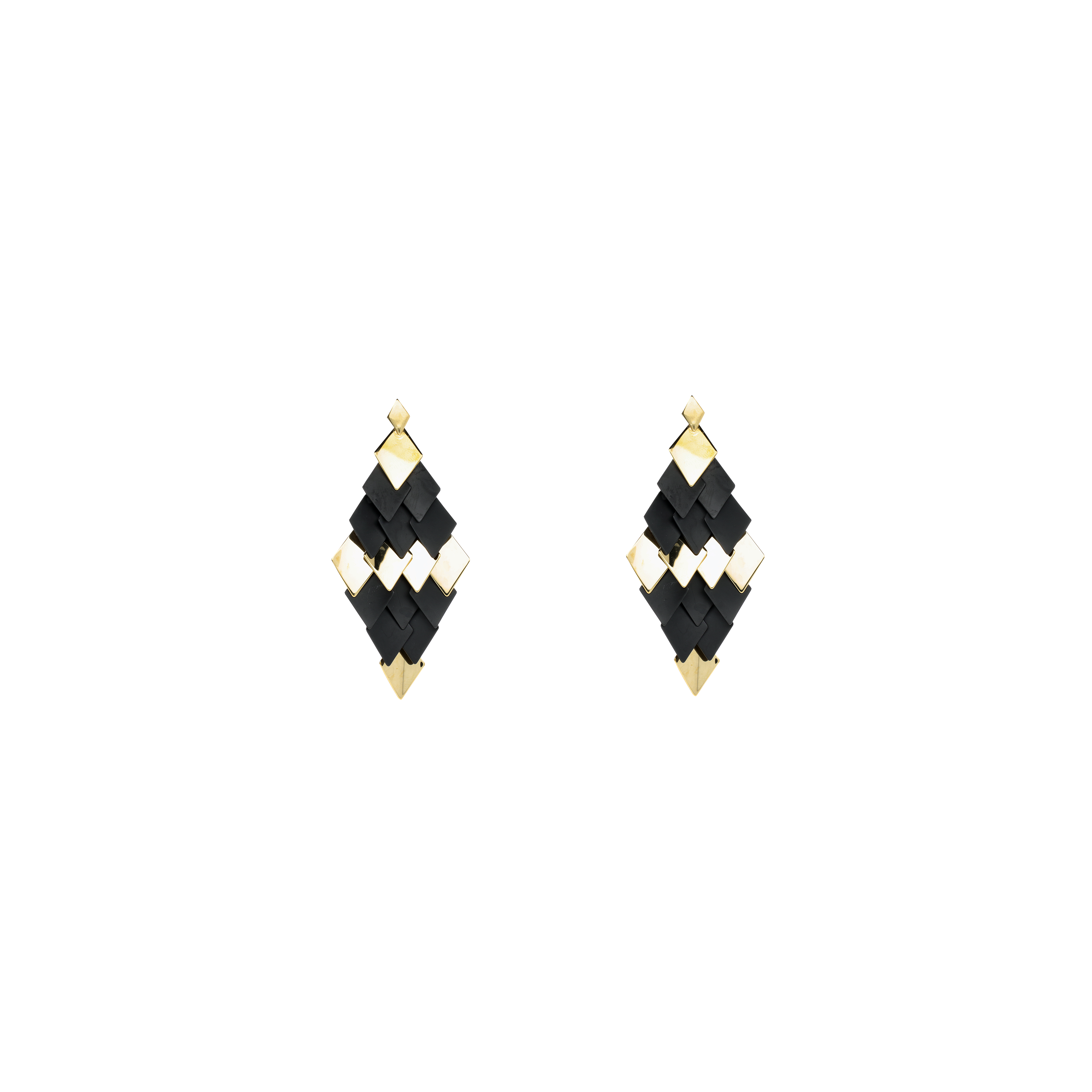 Orecchini in ceramica nera satinata e ceramica dorata gialla