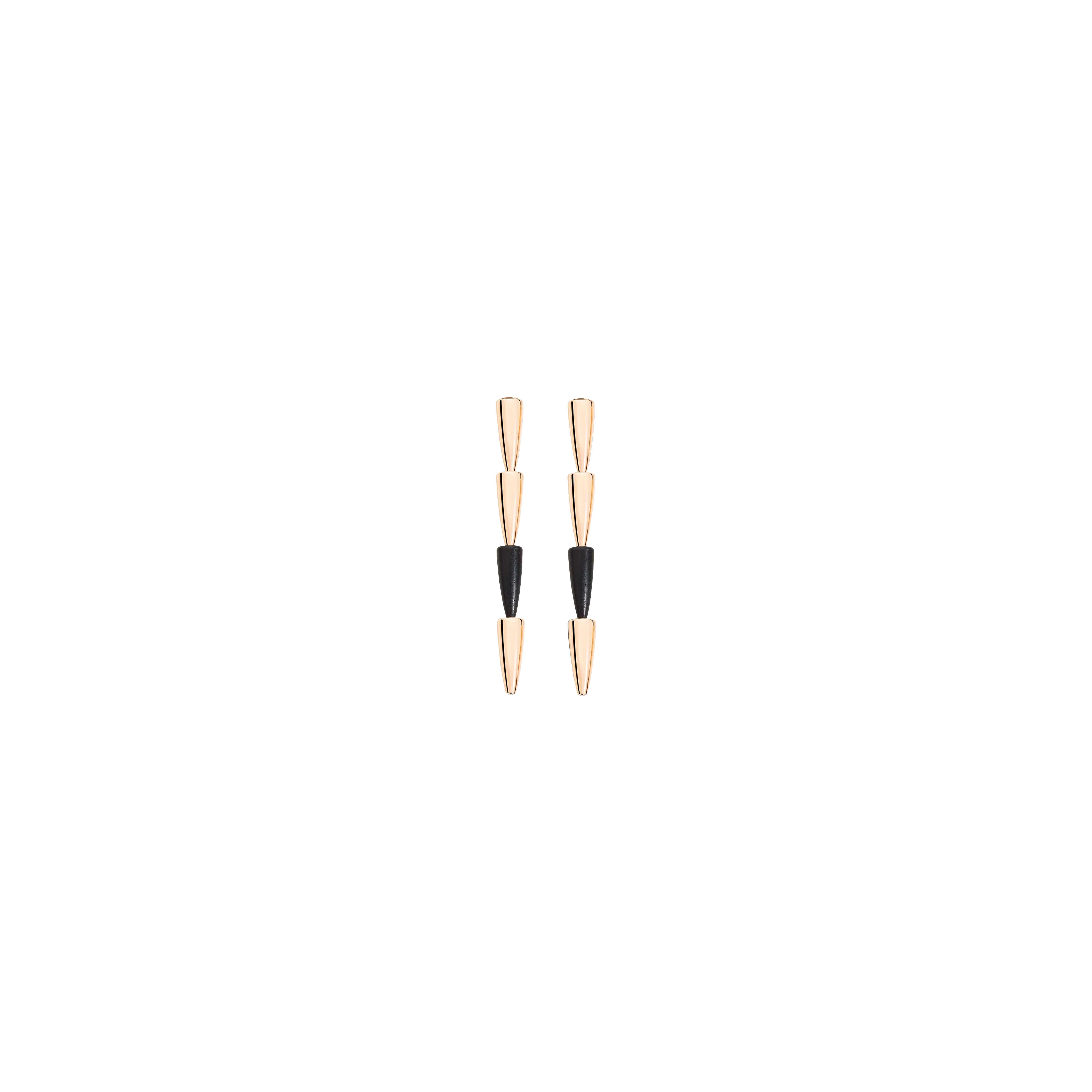 Questi orecchini esprimono tutto il fascino della linea Più iconica di Vhernier, che nella ripetizione del singolo elemento calla moltiplica femminilità ed eleganza casual chic. Modello a clip, semplice ed essenziale, qui proposto nella versione che alterna il classico oro rosa di Vhernier al nero assoluto dell'ebano.