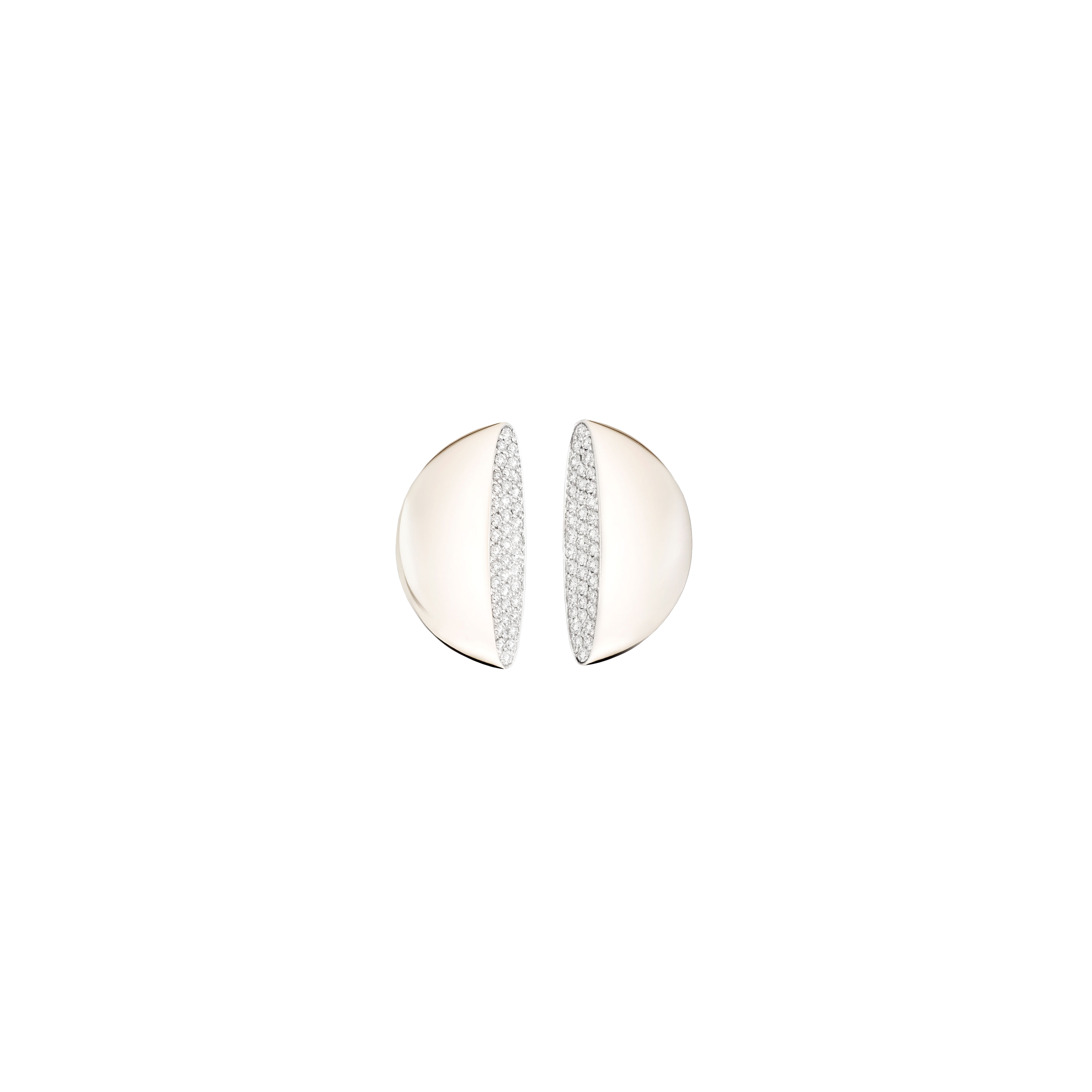 C'è tutta la passione di Vhernier per le linee pulite ed essenziali negli Eclisse, orecchini a clip in oro bianco che montano un pavé di diamanti meravigliosi.