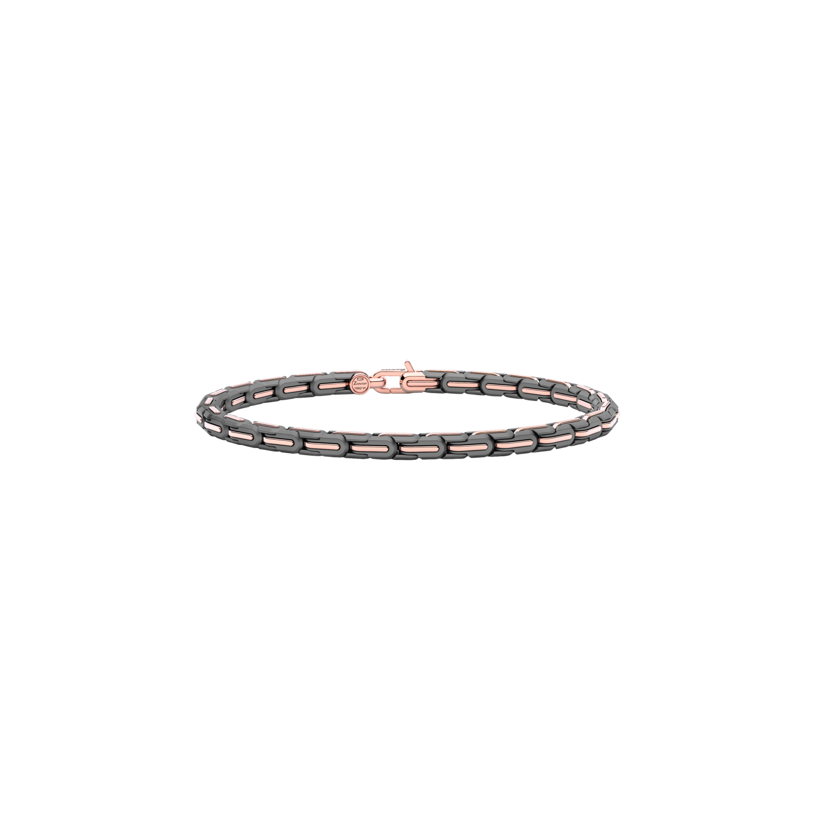 Bracciale Zancan in oro 18kt e ceramica nera. Il bracciale è composto da link geometrici uniti da perni che donano un design sinuoso e morbido al gioiello. Il contrasto tra oro rosa e lucente ceramica nera dona a questo bracciale un forte impatto visivo. Un gioiello della grande complessità meccanica, ed estrema eleganza che esalta al massimo questo gioiello di altissima gioielleria. Il bracciale fa parte della collezione Ceramikgold, la collezione che unisce oro 18k e ceramica tramite complesse tecniche di lavorazione.