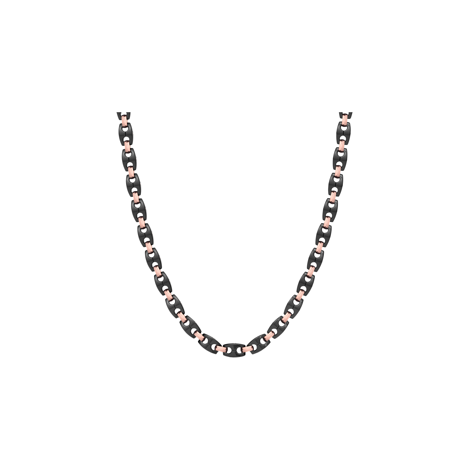 Collana Zancan in oro 18kt e ceramica nera. La collana è composta da link geometrici e dettagli che donano un design meccanico e unico al gioiello. Gli elementi a colore, la chiusura a moschettone e il dettaglio con diamanti in contrasto, caratterizzano questa collana dal forte impatto visivo. Un gioiello di grande eleganza e unicità. La collana fa parte della collezione Ceramikgold, la collezione che unisce oro 18k e ceramica tramite complesse tecniche di lavorazione artigianale eseguite unicamente a mano dai maestri orafi nei laboratori Zancan.