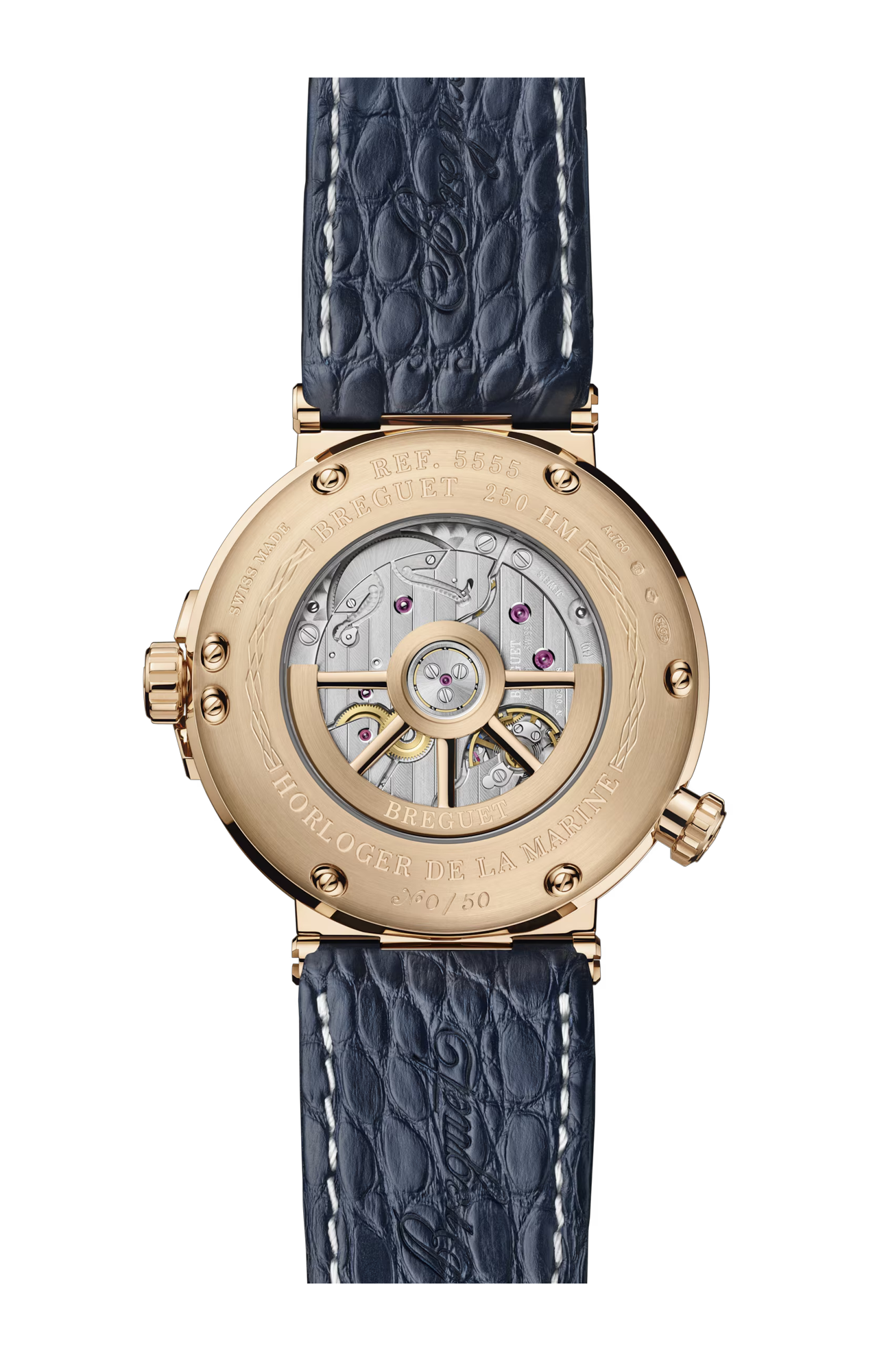 Il Breguet Marine Hora Mundi 5555BH/YS/9WV è un segnatempo di alta orologeria dedicato ai viaggiatori esigenti e agli amanti delle complicazioni sofisticate, che unisce precisione tecnica, eleganza sportiva e un’estetica contemporanea. La cassa rotonda in oro Breguet 18 K da 43,9 mm, caratterizzata da finiture satinate e lucidate, offre una presenza di grande impatto al polso pur mantenendo comfort e leggibilità, mentre la lunetta spazzolata e le anse scolpite aggiungono carattere dinamico. Il quadrante presenta una mappa del mondo incisa con dettagli raffinati e sono integrate le indicazioni del doppio fuso orario, giorno/notte e città di riferimento: strumenti perfetti per chi viaggia frequentemente e desidera una rapida lettura delle informazioni globali. La complicazione Hora Mundi consente di impostare istantaneamente l’ora locale nella città desiderata senza interferire con l’ora di riferimento, grazie a un meccanismo innovativo che rende intuitiva la gestione di più fusi orari. Lancette, indici e dettagli in oro bianco garantiscono ottima leggibilità e contrasto con lo sfondo, mentre il vetro zaffiro antigraffio con trattamento antiriflesso assicura visibilità ottimale da ogni angolo. All’interno pulsa un movimento automatico di manifattura con finiture di livello eccelso, visibile attraverso il fondello in vetro zaffiro, che combina affidabilità, precisione e una riserva di carica generosa. Il cinturino in pelle di alligatore integrato con fibbia déployante in oro bianco completa il design con comfort ergonomico e stile contemporaneo. Il Marine Hora Mundi 5555BH/YS/9WV è pensato per chi desidera un orologio tecnico e cosmopolita, capace di accompagnare con eleganza i propri viaggi in tutto il mondo, con una fusione perfetta tra complicazioni orologiere e sofisticata estetica marina.