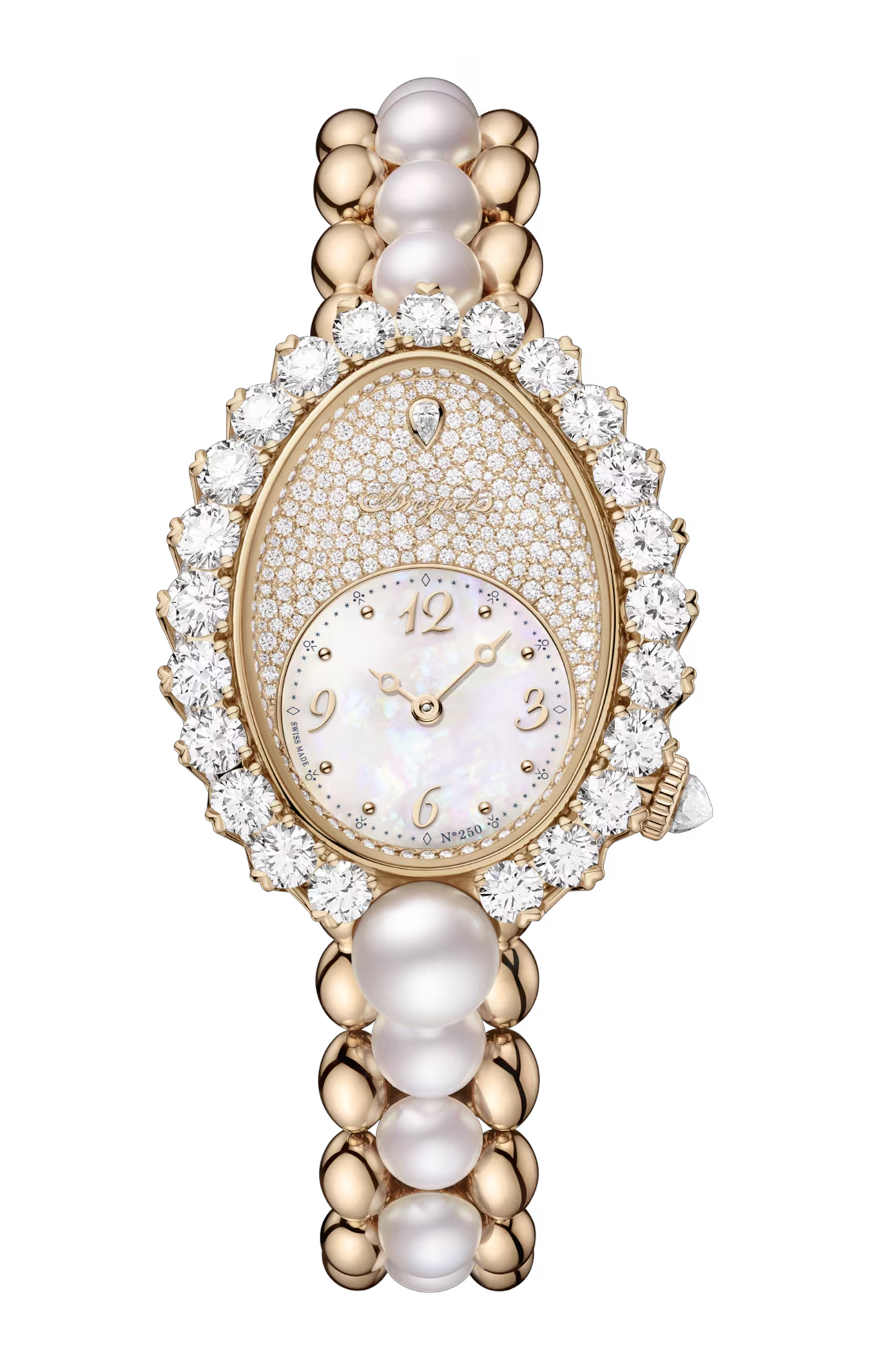 Il Breguet Reine de Naples Perles Impériales GJ29BH/8925/4D5J4 è un segnatempo di straordinaria eleganza che incarna la fusione tra alta gioielleria e orologeria di eccellenza, pensato per chi ama accessori raffinati e di grande carattere. La cassa ovale in oro Breguet 18 K, dalle proporzioni armoniose, è impreziosita da una doppia fila di diamanti taglio brillante lungo la lunetta e il profilo, catturando la luce con una luminosità intensa e sofisticata. Il quadrante madreperla, con una finitura delicata e iridescente, è ornato da una raffinata decorazione perlacea che richiama motivi naturali e regali, mentre le lancette Breguet in acciaio azzurrato e gli indici sottili offrono leggibilità elegante e discreta. Il vetro zaffiro bombato antigraffio valorizza ogni dettaglio visivo, aggiungendo profondità e protezione alla composizione. All’interno pulsa un movimento meccanico automatico di alta precisione, progettato per garantire affidabilità costante e prestazioni impeccabili, espressione della maestria artigianale della Maison. Il cinturino in pelle pregiata completa il design con comfort e stile, rendendo questo segnatempo ideale sia per momenti formali sia come simbolo di raffinatezza nel quotidiano. Il Reine de Naples Perles Impériales è molto più di un orologio: è un gioiello da polso che celebra eleganza, tradizione e perfezione tecnica in un’estetica senza tempo.
