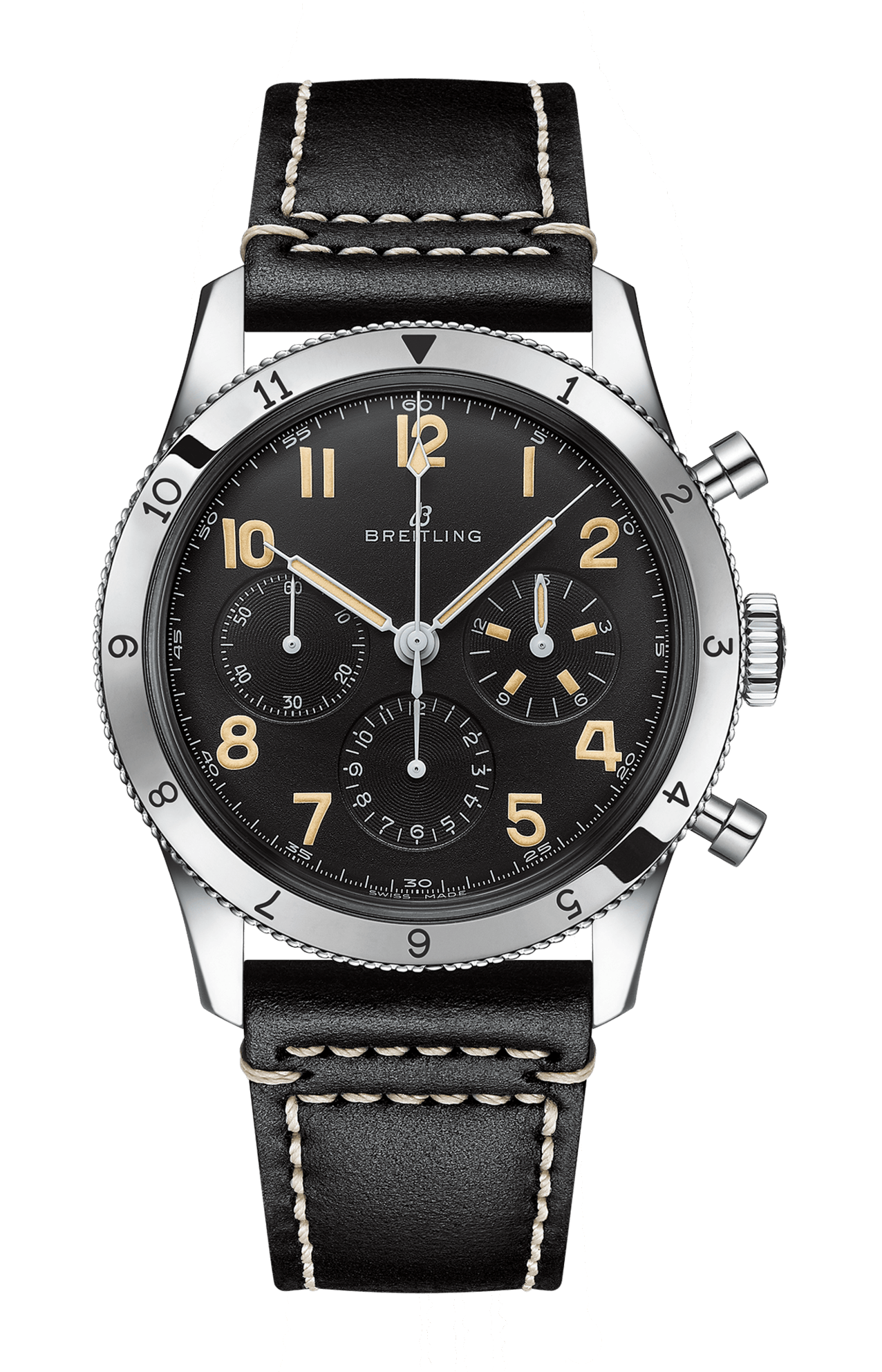 Negli anni '50 l’originale Co-Pilot ref. 765 AVI è stato uno dei protagonisti accanto a un’altra icona di Breitling: il Navitimer. Con il suo design audace, la lunetta girevole incisa e il quadrante estremamente leggibile, il 765 AVI è diventato immediatamente il compagno perfetto del Navitimer, quale orologio per piloti robusto e affidabile. Oggi, l’AVI ref. 765 1953 Re-Edition ricrea fino all'ultimo dettaglio una delle prime realizzazioni del modello Co-Pilot ref. 765 AVI. Il suo quadrante completamente nero, protetto da un cristallo di esalite molto bombato, presenta gli stessi numeri arabi dell’originale Co-Pilot del 1953, con contatori cronografici tono su tono dei piccoli secondi, dei 15 minuti e delle 12 ore. Il rivestimento in Super-Luminova® applicato a mano è stato scelto con cura per richiamare il materiale originale luminescente e conferire all’AVI ref. 765 1953 Re-Edition un ulteriore tocco di fascino vintage. Anche la cassa in acciaio inossidabile da 41 mm è identica e la lunetta è fissata con tre viti che si trovano esattamente nelle stesse posizioni di quelle dell’orologio del 1953. Solo due dettagli moderni consentono di distinguere questo nuovo segnatempo dal suo famoso antenato: l’impermeabilità è stata aumentata fino a 3 bar (30 metri) e gli osservatori attenti noteranno che la dicitura «Geneve» non compare più sul quadrante. L’AVI ref. 765 1953 Re-Edition è azionato dal calibro di manifattura Breitling B09, un calibro certificato COSC a carica manuale basato sul rinomato calibro Breitling 01 e sviluppato appositamente per le riedizioni storiche. È disponibile montato su un cinturino in pelle nera di ispirazione vintage con fibbia ad ardiglione, in edizione limitata di 1953 esemplari, ognuno dei quali reca l’incisione «One of 1953».