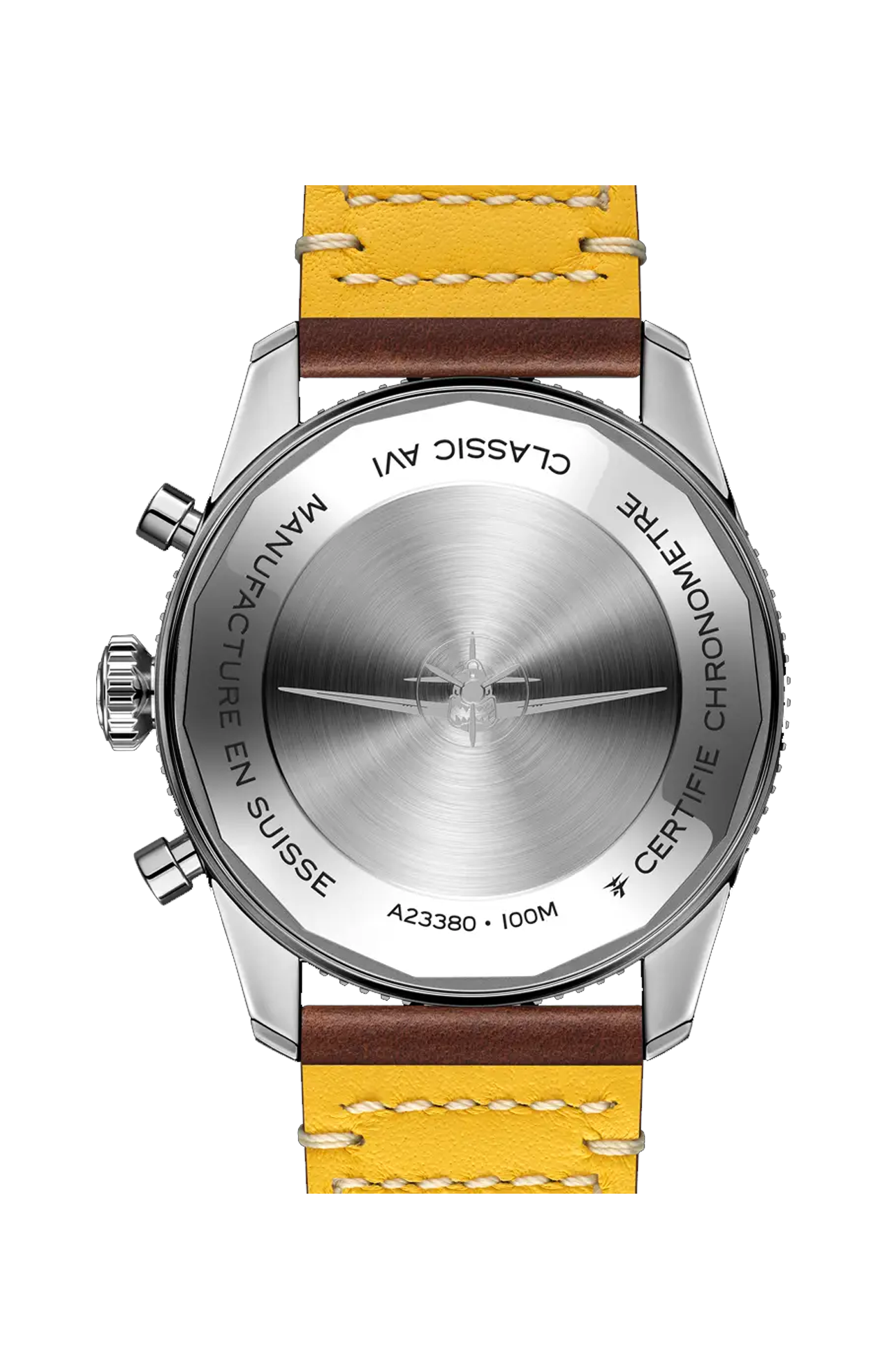 Dai coraggiosi decolli, i primi nella storia, fino alla nascita dei viaggi aerei commerciali, la storia di Breitling è inscindibile da quella del volo. Negli anni '30, l’Huit Aviation Department di Breitling diventa famoso grazie all’invenzione di orologi di precisione per la cabina di pilotaggio. Vent’anni dopo, Breitling presenta un altro strumento per il volo, questa volta da indossare al polso: il Ref. 765 AVI. Questo orologio pionieristico per piloti ha fornito la base tecnica per l’attuale Classic AVI, una collezione ispirata allo spirito vigoroso dei primi celebri aeroplani. Il Classic AVI Curtiss P-40 Warhawk rende omaggio a una di queste leggende. Pensato come un caccia, il Curtiss P-40 Warhawk vola per la prima volta nel 1938 dimostrandosi immediatamente un esempio di agilità. È la capacità di questo monopiano di prodursi in virate eccezionali a conferirgli un certo vantaggio in volo, ma non solo: la sua robusta struttura gli permetteva di tollerare condizioni climatiche avverse e persino molte collisioni in volo. L’aggressiva bocca di squalo disegnata sulla parte anteriore della fusoliera del Warhawk ne conferma la fama di ribelle dei cieli. Essendo un vero orologio da pilota progettato per resistere alle asprezze della cabina di pilotaggio dell’epoca, il Classic AVI Curtiss P-40 Warhawk presenta grandi numeri arabi facilmente leggibili su quadrante e lunetta. La lunetta zigrinata sulla cassa da 42 mm fornisce una presa ottimale anche per le mani di un pilota che indossa i guanti. I cinturini in pelle di vitello impunturata sono un richiamo alle cuciture sui rivestimenti delle cabine di pilotaggio classiche, mentre il bracciale in acciaio inossidabile offre un’elegante alternativa. I piloti, e non solo, apprezzeranno la facilità di lettura, la versatilità nell’abbinamento e lo stile sobrio. Il meccanismo del movimento del Classic AVI è il calibro Breitling 23 certificato COSC che offre circa 48 ore di riserva di carica.