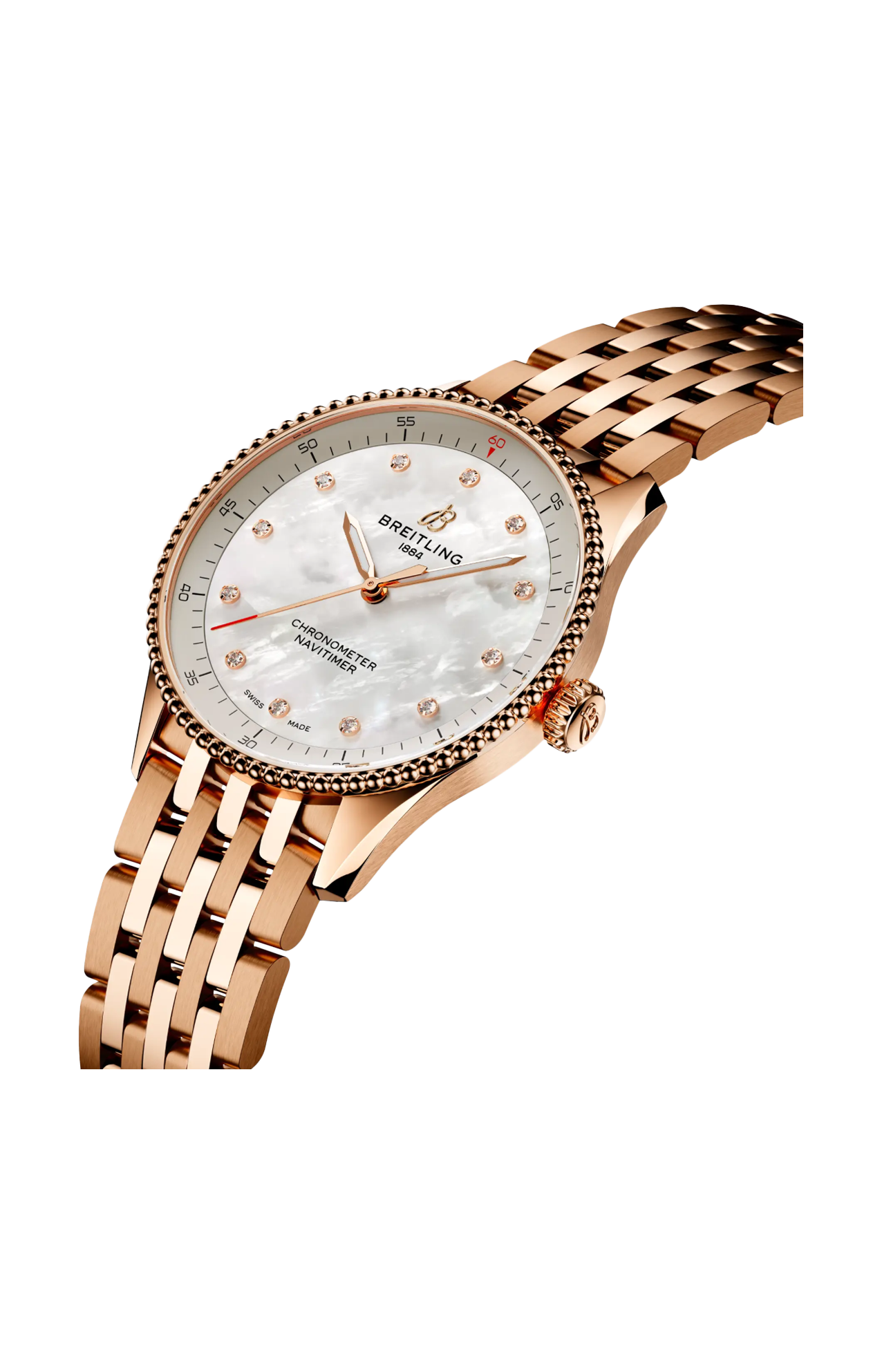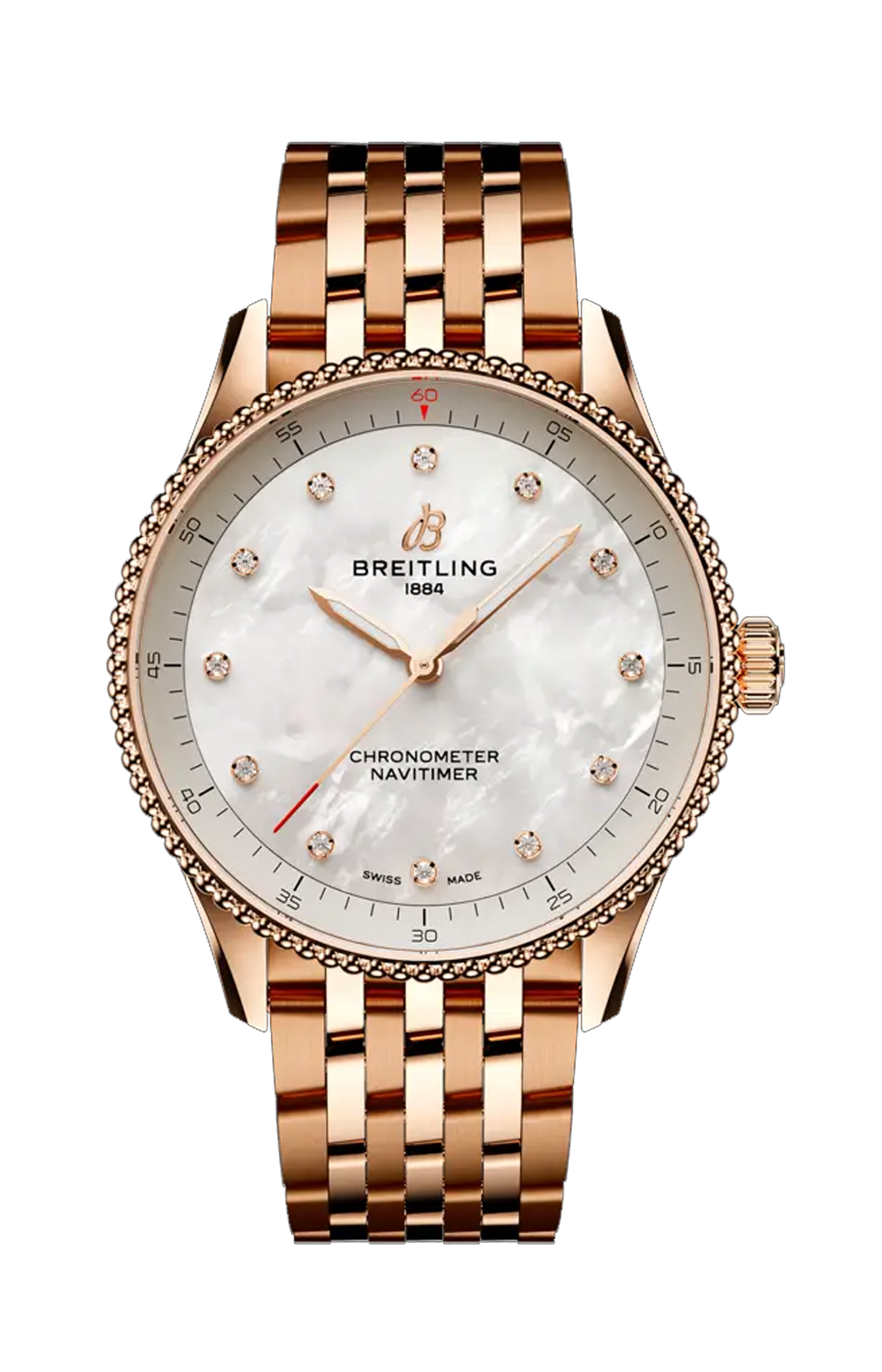 L’icona di Breitling: un eccellente compagno di viaggio. Il Navitimer è uno degli orologi più riconoscibili mai realizzati. È sulla lista dei collezionisti come uno degli orologi più famosi al mondo. Nato nel 1952 come uno strumento per piloti, questo segnatempo assume ora un significato più profondo per chiunque ne abbia posseduto uno nel corso della propria vita. La nostra icona ora è disponibile nelle dimensioni di 36 e 32 mm per le donne e gli uomini che amano l’estetica di un orologio dal diametro inferiore. Mentre il Navitimer 36 mm presenta la lunetta a perline e l’iconico regolo calcolatore circolare che gli conferisce quell’aspetto inconfondibile, la splendida variante da 32 mm rinuncia al regolo calcolatore a favore di un quadrante dal design semplificato adatto al suo diametro sottile. Ma questi modelli hanno molto di più da offrire oltre alle loro nuove misure. Tonalità pastello, madreperla e preziosi materiali tracciabili si combinano con raffinate finiture per infondere ai segnatempo un fascino da gioielleria, aggiungendo un’eleganza versatile al leggendario orologio da navigazione, pronto ad affrontare qualsiasi viaggio.