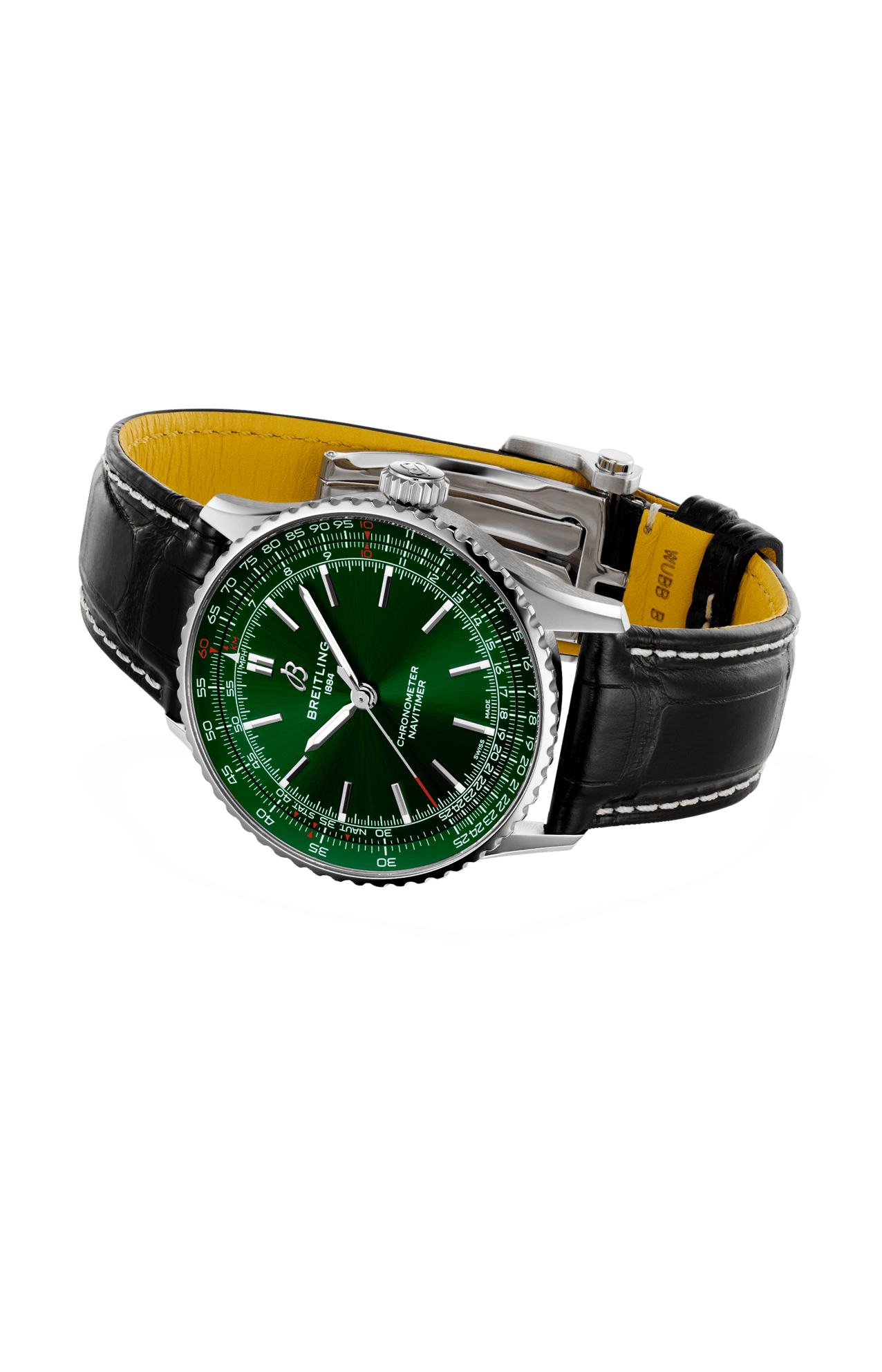 Il Navitimer più versatile di Breitling: per viaggiare. Il Navitimer è uno degli orologi più riconoscibili mai realizzati. È sulla lista dei collezionisti come uno degli orologi più famosi al mondo. Nato nel 1952 come uno strumento per piloti, questo segnatempo ha assunto via via un significato più profondo per chiunque ne abbia posseduto uno nel corso della propria vita. Il Navitimer Automatic e l’Automatic GMT 41 distillano il look iconico del Navitimer, togliendo il cronografo, ma mantenendo equilibrata la composizione del quadrante. La posizione centrale della scala a 24 ore del GMT e l’aspetto nitido dell’Automatic garantiscono che il complicato regolo calcolatore spicchi visivamente, snellendo al contempo l’estetica generale. Impreziosendo ulteriormente la collezione, è stata incorporata la lunetta a tacche per un tocco moderno, con finiture lucidate e spazzolate alternate che aggiungono un dinamico gioco di luci. I cinturini in pelle di coccodrillo e i bracciali con chiusura a farfalla senza cuciture offrono comfort e praticità.