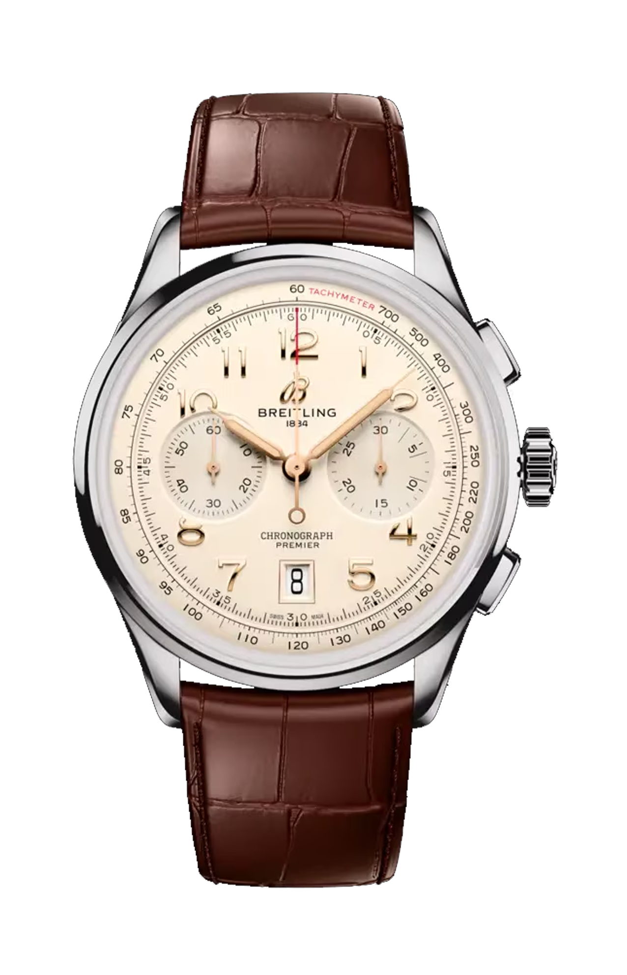 All’inizio degli anni ’40, Willy Breitling stava già sognando un periodo post-conflitto, dove l’utilità avrebbe lasciato spazio a un ottimismo senza freni. Iniziò a disegnare un cronografo funzionale, ma al contempo innegabilmente elegante, da poter indossare all’infinito e che fosse, per usare le sue stesse parole, «il segno inequivocabile di un gusto impeccabile». E chiamò questa nuova linea Premier. Per creare il Premier moderno, Breitling ha preservato i dettagli distintivi della versione vintage, compresa la lunetta liscia fissa, il quadrante con doppio registro, i pulsanti rettangolari affusolati e i numeri arabi applicati. Il Premier B01 Chronograph 42 si propone in una gamma di colori del quadrante e di materiali della cassa. È disponibile con una varietà di classici cinturini in pelle di coccodrillo o con un elegante bracciale in metallo a sette file. Il Premier moderno è anche all’altezza dei rigidi standard tecnici di Willy Breitling, con il suo eccezionale movimento a carica automatica – il calibro di manifattura Breitling 01 certificato COSC – progettato per la massima precisione, affidabilità e funzionalità.