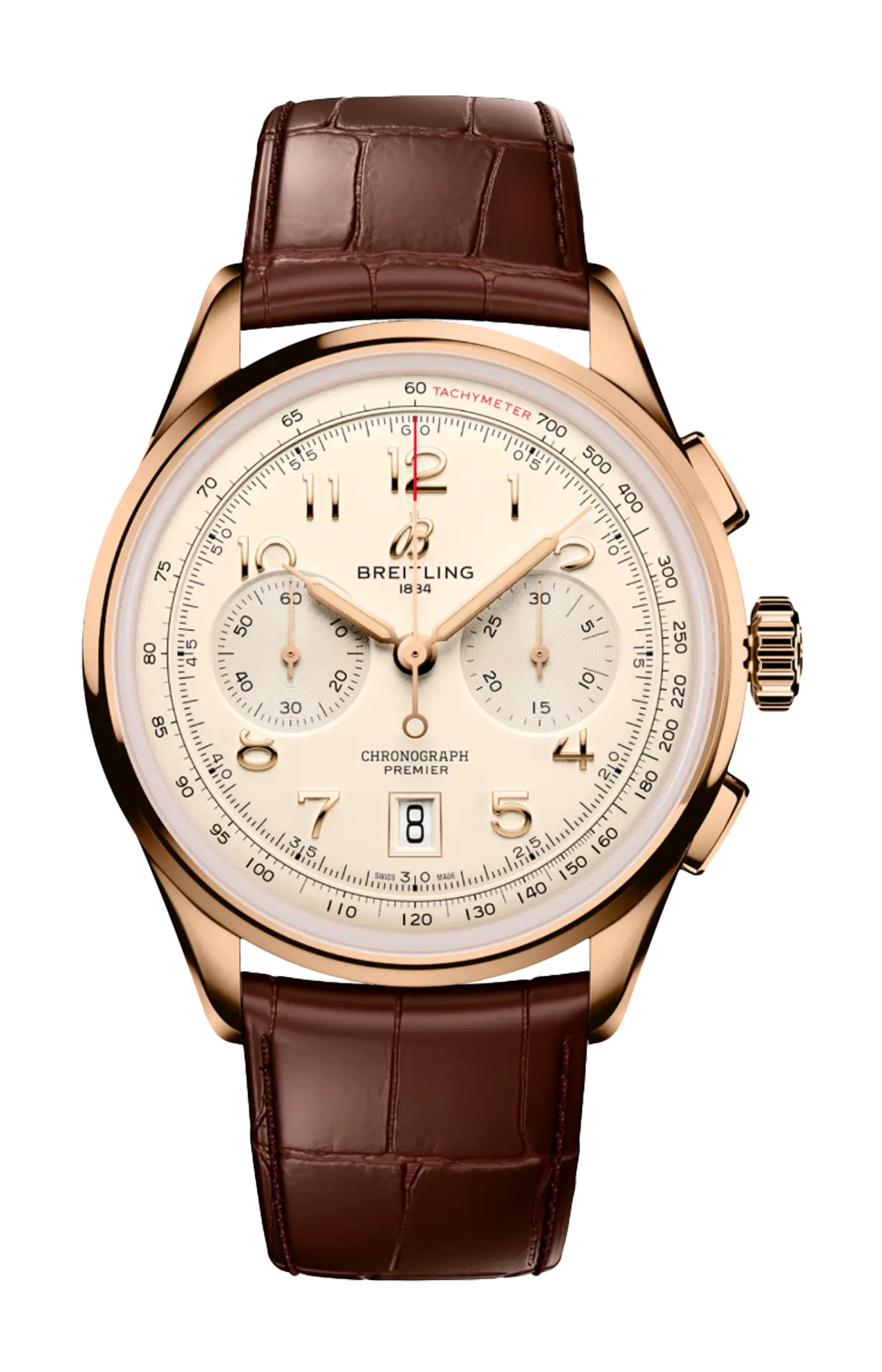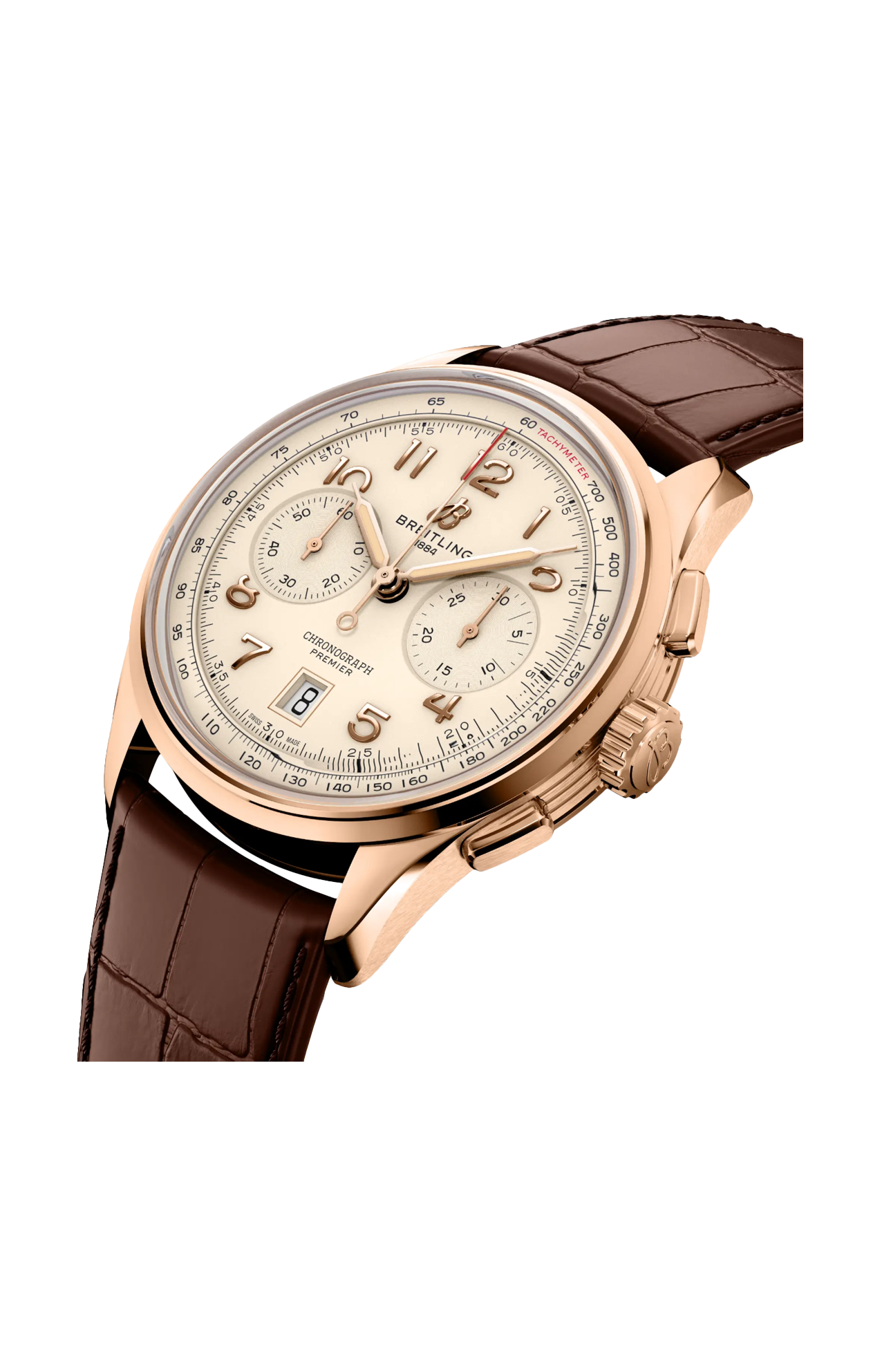 All’inizio degli anni ’40, Willy Breitling stava già sognando un periodo post-conflitto, dove l’utilità avrebbe lasciato spazio a un ottimismo senza freni. Iniziò a disegnare un cronografo funzionale, ma al contempo innegabilmente elegante, da poter indossare all’infinito e che fosse, per usare le sue stesse parole, «il segno inequivocabile di un gusto impeccabile». E chiamò questa nuova linea Premier. Per creare il Premier moderno, Breitling ha preservato i dettagli distintivi della versione vintage, compresa la lunetta liscia fissa, il quadrante con doppio registro, i pulsanti rettangolari affusolati e i numeri arabi applicati. Il Premier B01 Chronograph 42 si propone in una gamma di colori del quadrante e di materiali della cassa. È disponibile con una varietà di classici cinturini in pelle di coccodrillo o con un elegante bracciale in metallo a sette file. Il Premier moderno è anche all’altezza dei rigidi standard tecnici di Willy Breitling, con il suo eccezionale movimento a carica automatica – il calibro di manifattura Breitling 01 certificato COSC – progettato per la massima precisione, affidabilità e funzionalità.