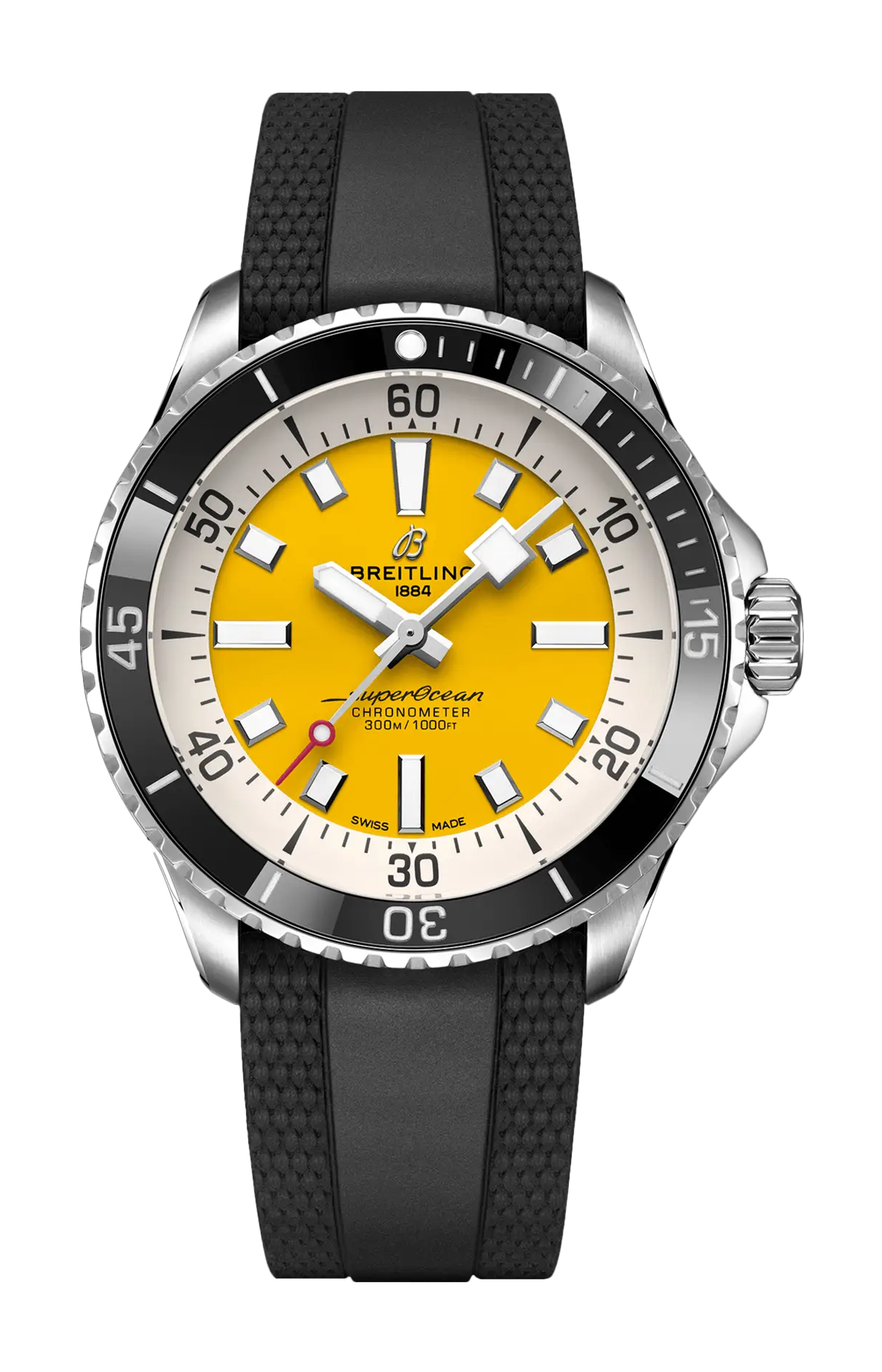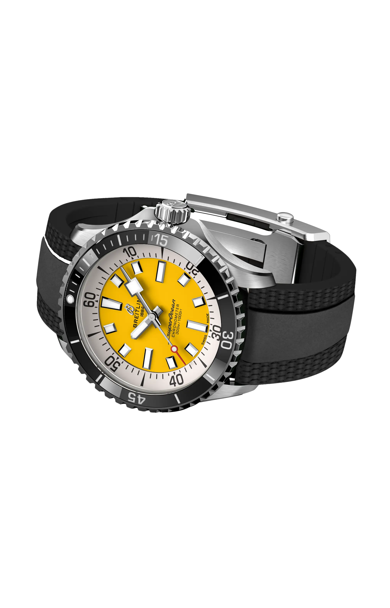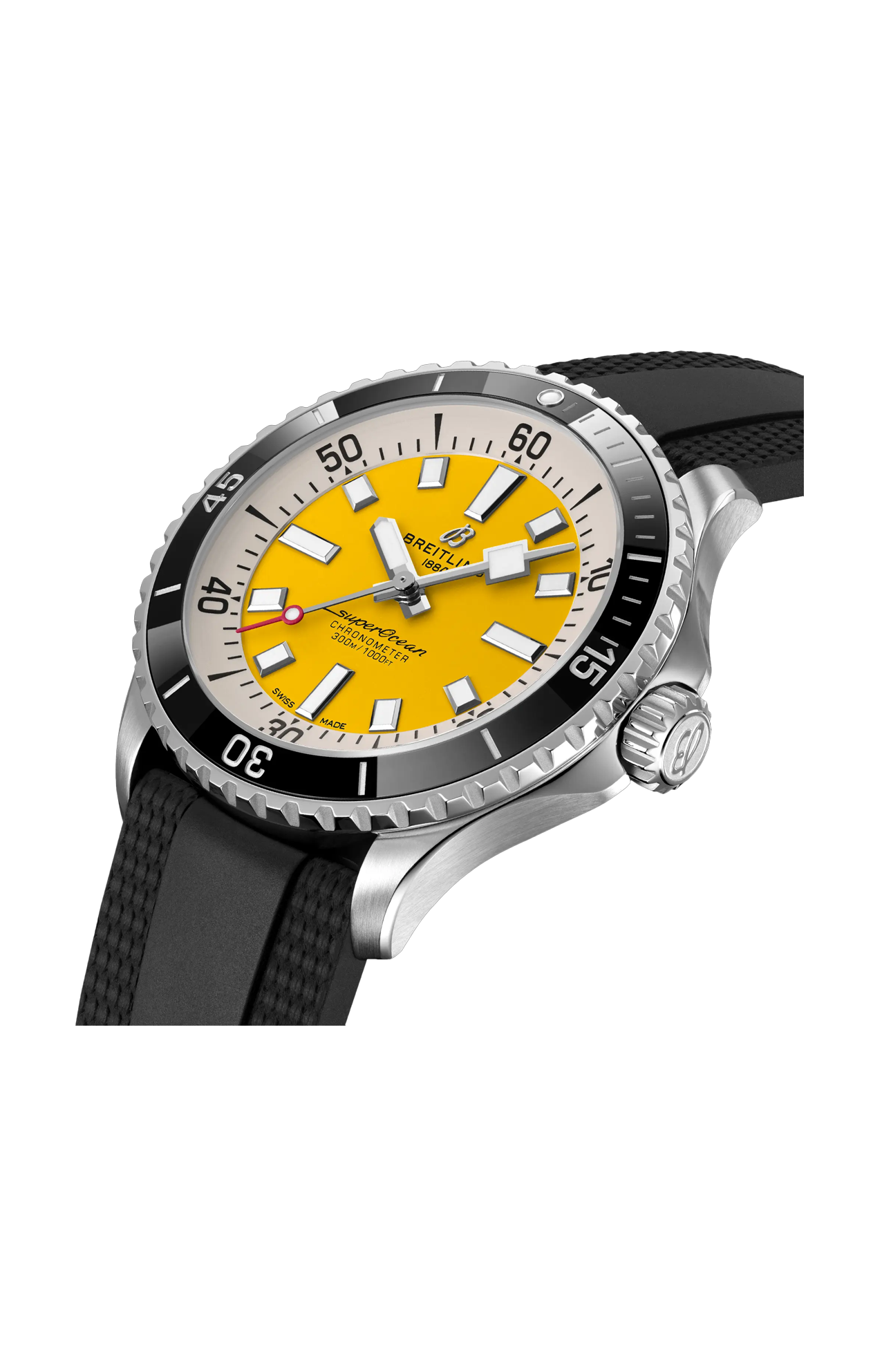 Performance e stile per tutti i tuoi acquisti a tema acquatico: ora in una speciale edizione esclusiva online con quadrante giallo. Negli anni '60, il nuovo sport dell’immersione subacquea faceva furore. Per i sub, il cronometraggio era essenziale e Breitling si impegnò a fornire loro l’orologio subacqueo più preciso possibile, eliminando qualsiasi caratteristica che non supportasse le necessità sottomarine salvavita. Questo orologio semplificato venne chiamato Slow Motion. Rimasero le linee pulite, i solidi indici luminescenti, le lancette quadrate e un anello del quadrante fortemente in contrasto – il tutto al servizio della massima leggibilità. Pratico? Sì. Ma ciò di cui la gente si innamorò era l’aspetto. Il nuovo Superocean ripercorre i codici di design celebrati dallo Slow Motion, aggiungendo caratteristiche moderne come la lunetta intarsiata in ceramica e i quadranti dai colori accesi. Le ampie lancette e gli indici Super-Luminova® luminescenti consentono una facile leggibilità sott’acqua. L’orologio è impermeabile fino a 300 m (1000 ft) nonché resistente agli urti, alla sabbia e all’acqua salata. La versione in bronzo si avvale di una lega speciale altamente resistente alla corrosione, ma nel corso del tempo continua a sviluppare una sottile patina che rende l’orologio ancora più unico. Le due opzioni per il cinturino (in caucciù e con bracciale metallico) presentano una fibbia deployante per regolazioni minime fino a 15 mm, per una semplice vestibilità sopra giubbottoni aderenti o mute. La lunetta intarsiata in ceramica, antigraffio, non si usurerà mai né sbiadirà. Per sicurezza, la lunetta è unidirezionale nella maggior parte delle taglie e bidirezionale con una chiusura brevettata nel modello da 46 mm. Ma il meglio è che non è più in senso stretto soltanto un orologio subacqueo – è adatto per il surf, il nuoto, per far colpo al bar della spiaggia o da sfoggiare a cena. Il Superocean bilancia alla perfezione la nostalgia della sua eredità e un look nuovo e fresco.