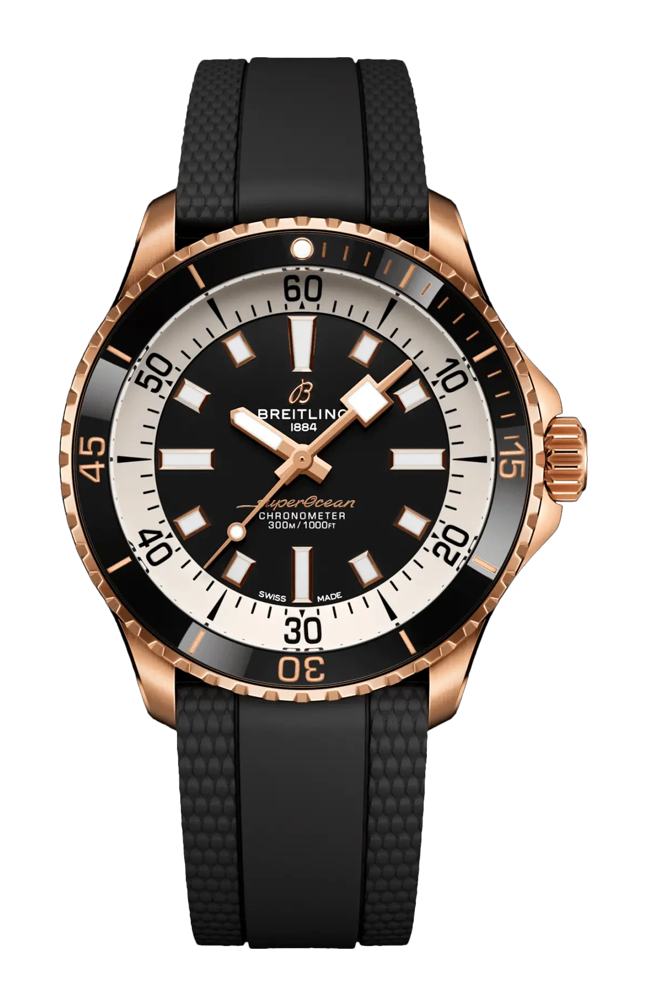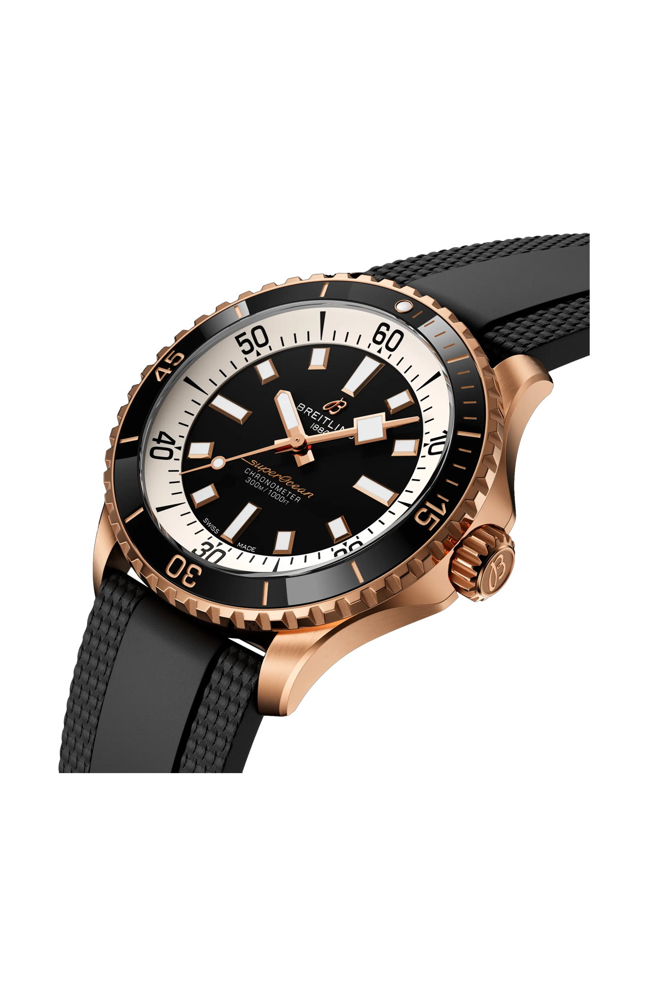 Prestazioni e stile per tutte le attività acquatiche. Negli anni '60, il nuovo sport dell’immersione subacquea faceva furore. Per i sub, il cronometraggio era essenziale e Breitling si impegnò a fornire loro l’orologio subacqueo più preciso possibile, eliminando qualsiasi caratteristica che non supportasse le necessità sottomarine salvavita. Questo orologio semplificato venne chiamato Slow Motion. Rimasero le linee pulite, i solidi indici luminescenti, le lancette quadrate e un anello del quadrante fortemente in contrasto – il tutto al servizio della massima leggibilità. Pratico? Sì. Ma ciò di cui la gente si innamorò era l’aspetto. Il nuovo Superocean ripercorre i codici di design celebrati dallo Slow Motion, aggiungendo caratteristiche moderne come la lunetta intarsiata in ceramica e i quadranti dai colori accesi. Le ampie lancette e gli indici Super-Luminova® luminescenti consentono una facile leggibilità sott’acqua. L’orologio è impermeabile fino a 300 m (1000 ft) nonché resistente agli urti, alla sabbia e all’acqua salata. La versione in bronzo si avvale di una lega speciale altamente resistente alla corrosione, ma nel corso del tempo continua a sviluppare una sottile patina che rende l’orologio ancora più unico. Le due opzioni per il cinturino (in caucciù e con bracciale metallico) presentano una fibbia deployante per regolazioni minime fino a 15 mm, per una semplice vestibilità sopra giubbottoni aderenti o mute. La lunetta intarsiata in ceramica, antigraffio, non si usurerà mai né sbiadirà. Per sicurezza, la lunetta è unidirezionale nella maggior parte delle taglie e bidirezionale con una chiusura brevettata nel modello da 46 mm. Ma il meglio è che non è più in senso stretto soltanto un orologio subacqueo – è adatto per il surf, il nuoto, per far colpo al bar della spiaggia o da sfoggiare a cena. Il Superocean bilancia alla perfezione la nostalgia della sua eredità e un look nuovo e fresco.