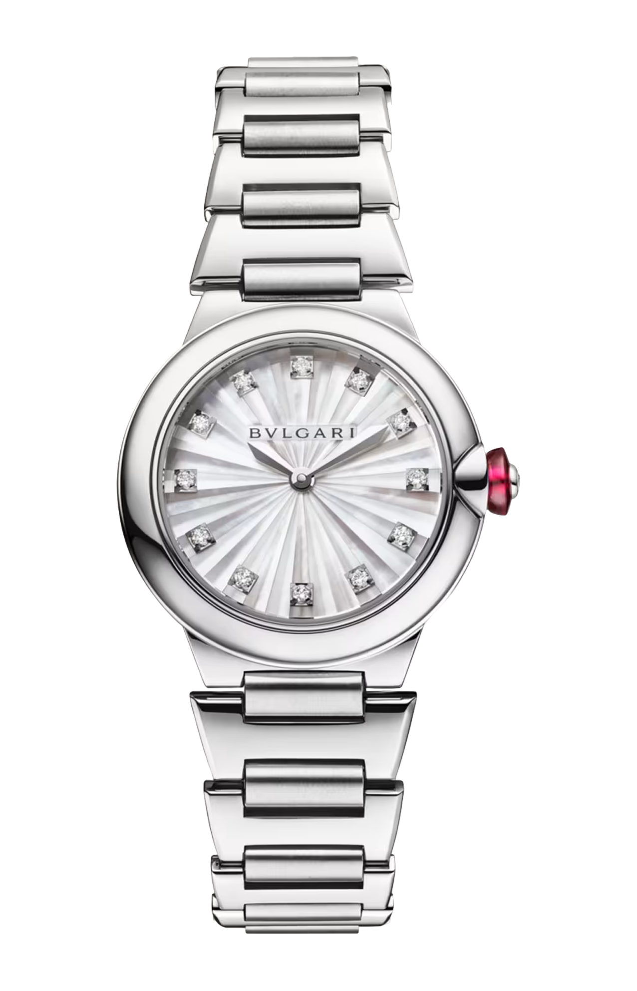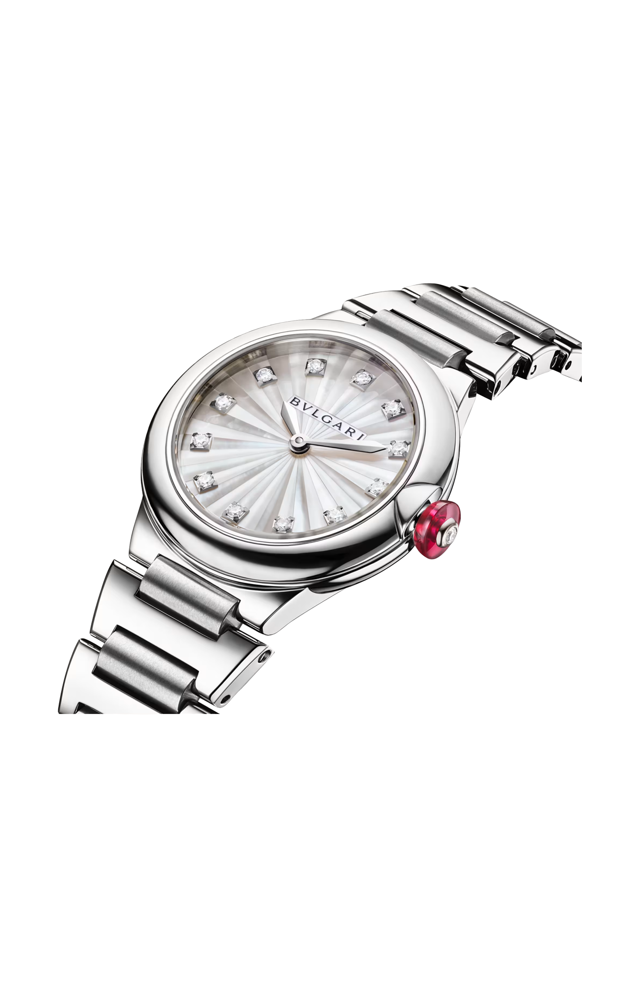 Simbolo di una femminilità moderna e radiosa, l’orologio LVCEA dona un tocco di glamour allo stile di ogni giorno. Infuso di eccezionale maestria artigianale, quest'orologio in acciaio inossidabile lucido e satinato-spazzolato è un emblema dell’eccellenza di BVLGARI nell’arte della gioielleria e dell'orologeria. Adornato da indici con diamanti, il quadrante tridimensionale si compone di elementi in madreperla bianca, singolarmente sfaccettati ed assemblati per evocare i raggi del sole. Una classica tecnica Métiers d’Art ispirata all’antica lavorazione ad intarsio.
