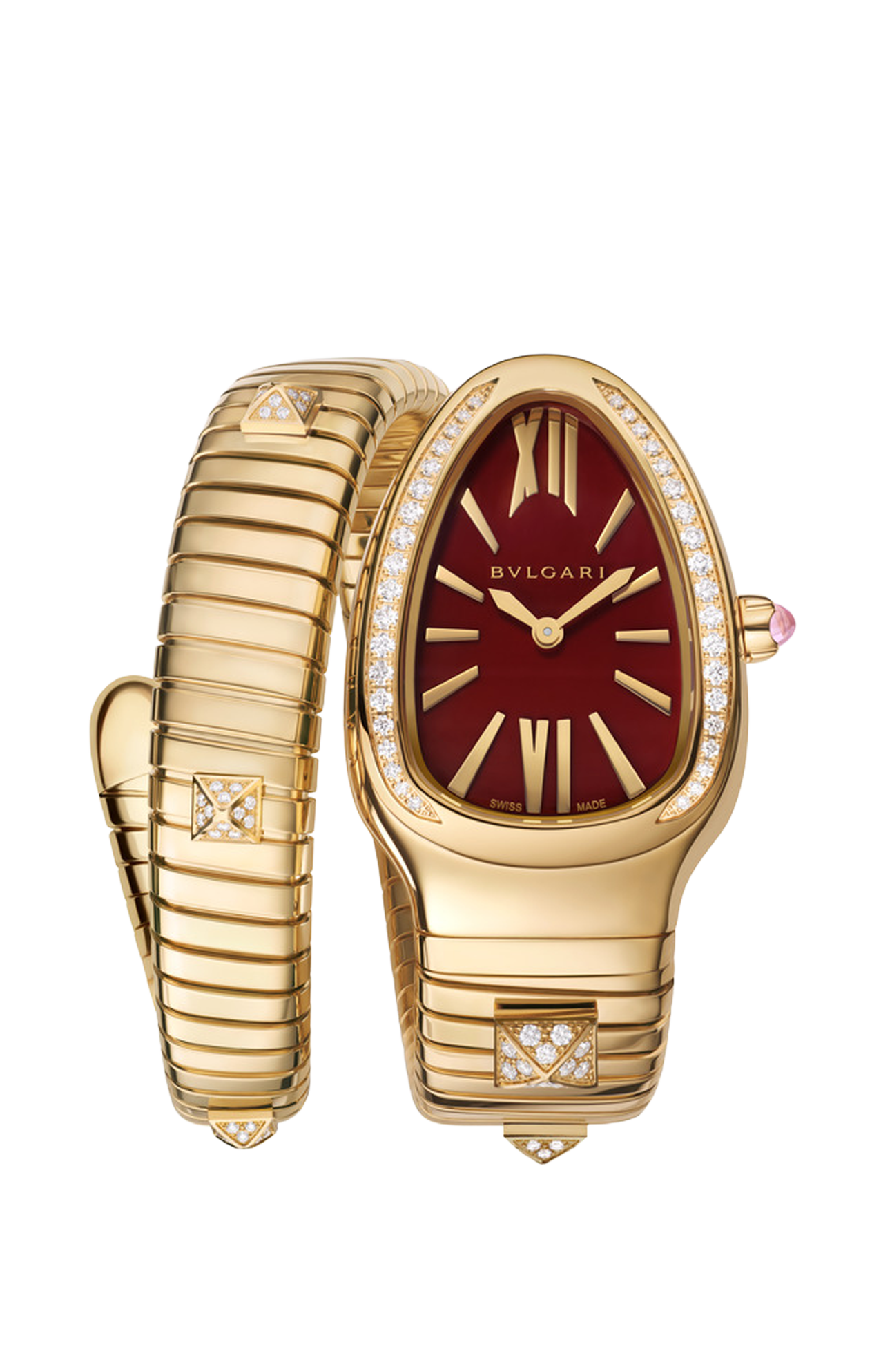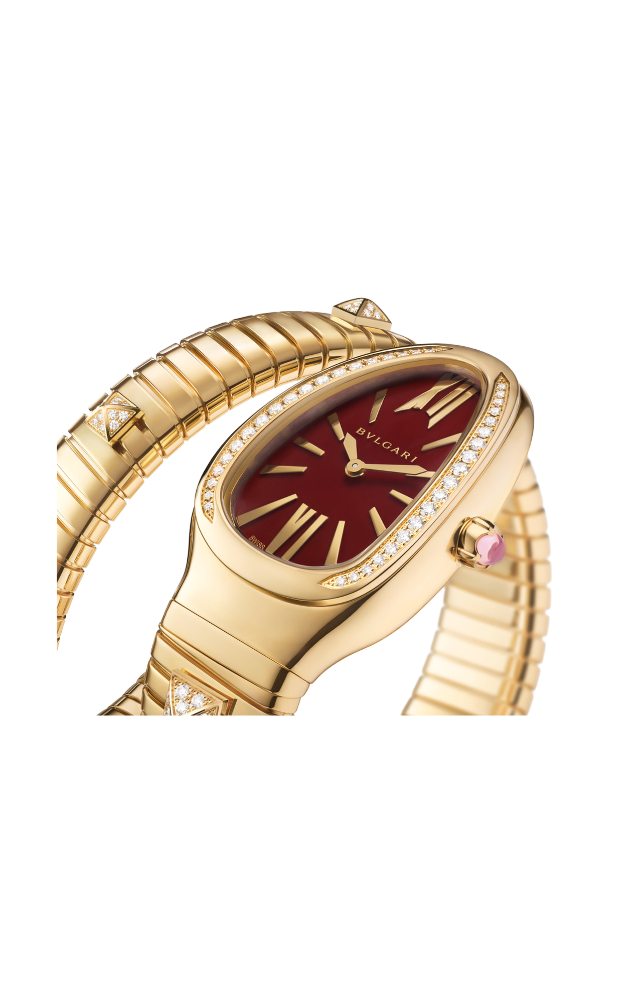 Misura 135 mm. Movimento al quarzo. Cassa oro giallo 18 carati 35 mm, quadrante marrone, bracciale oro giallo 18 carati con diamanti. Funzioni ore, minuti. Impermeabilità 30 metri.