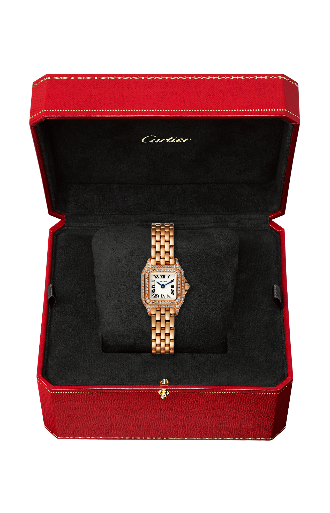 Panthère de cartier modello mini, oro rosa e diamanti, quarzo - HPI01724