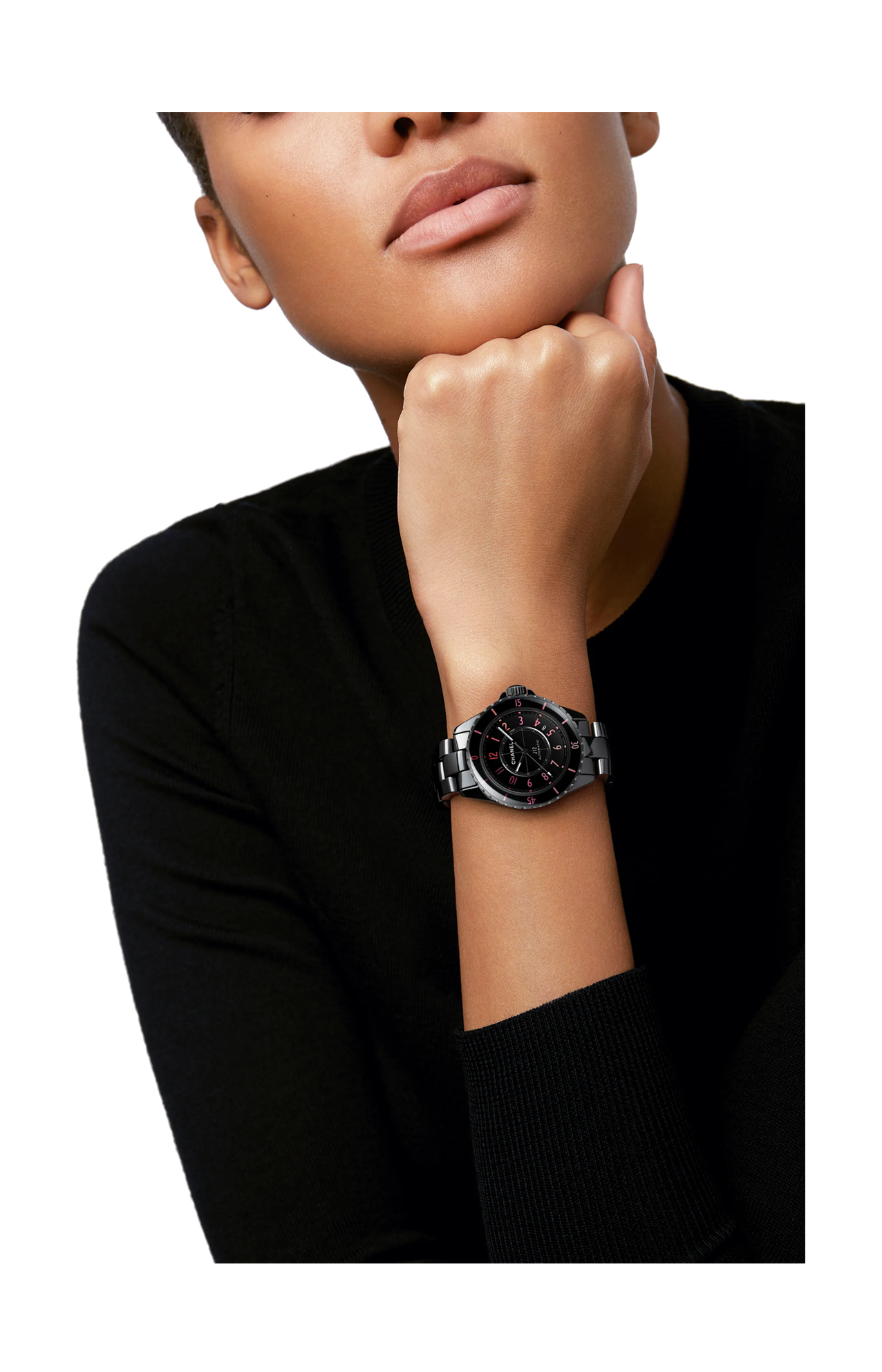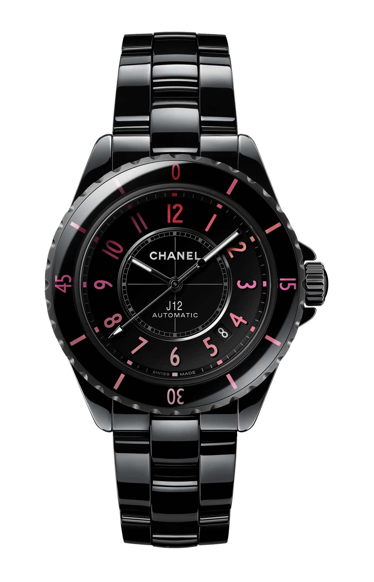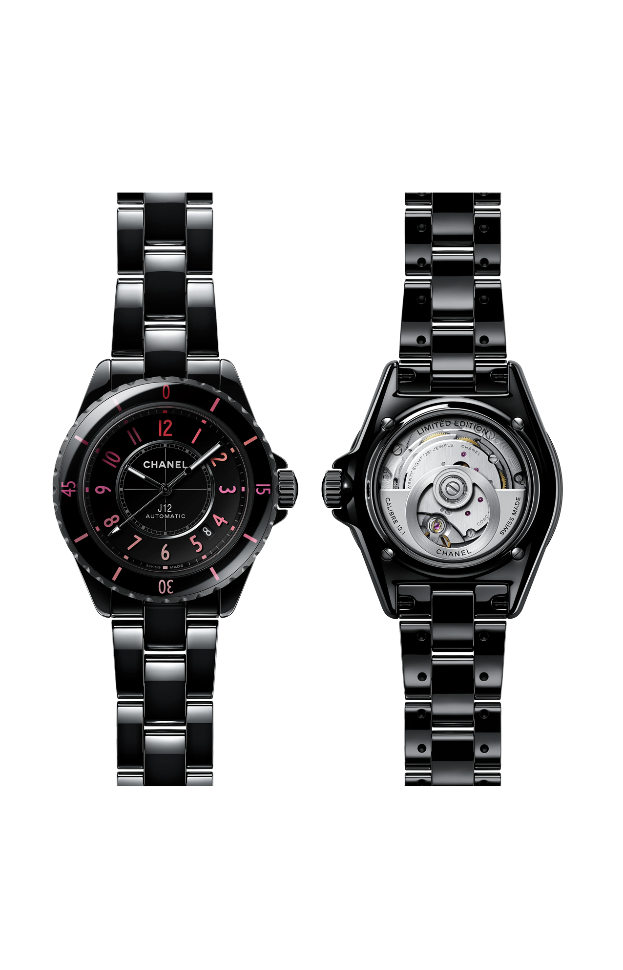 L’orologio J12 Blush calibro 12.1 di Chanel è un’edizione esclusiva che unisce l’estetica iconica della maison all’eccellenza dell’orologeria svizzera. Con una cassa da 38 mm in ceramica nera ad alta resistenza e acciaio con finitura opaca, questo segnatempo si distingue per un equilibrio perfetto tra forza e delicatezza. Il quadrante laccato nero si anima grazie a indici sfumati dal rosa al rosso, che si ritrovano anche sulla lunetta, creando un sofisticato effetto blush che cattura la luce con eleganza. Il cuore dell’orologio è il calibro 12.1, un movimento meccanico a carica automatica progettato in esclusiva per Chanel, visibile attraverso il fondello in vetro zaffiro, con una riserva di marcia di circa 70 ore e una precisione certificata. Completato da un bracciale in ceramica nera con chiusura tripla pieghevole, garantisce impermeabilità fino a 200 metri, unendo raffinatezza e funzionalità. Il J12 Blush è più di un orologio: è una dichiarazione di stile, pensata per chi sceglie il dettaglio come forma d’identità.