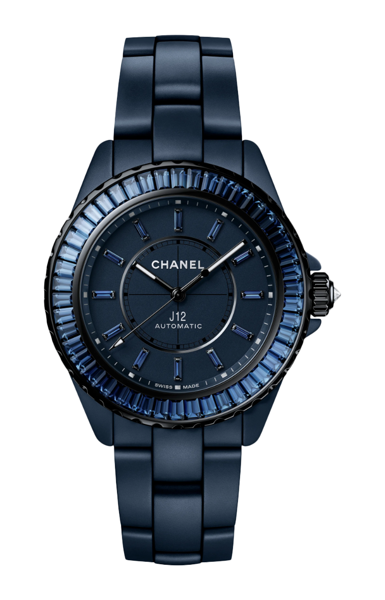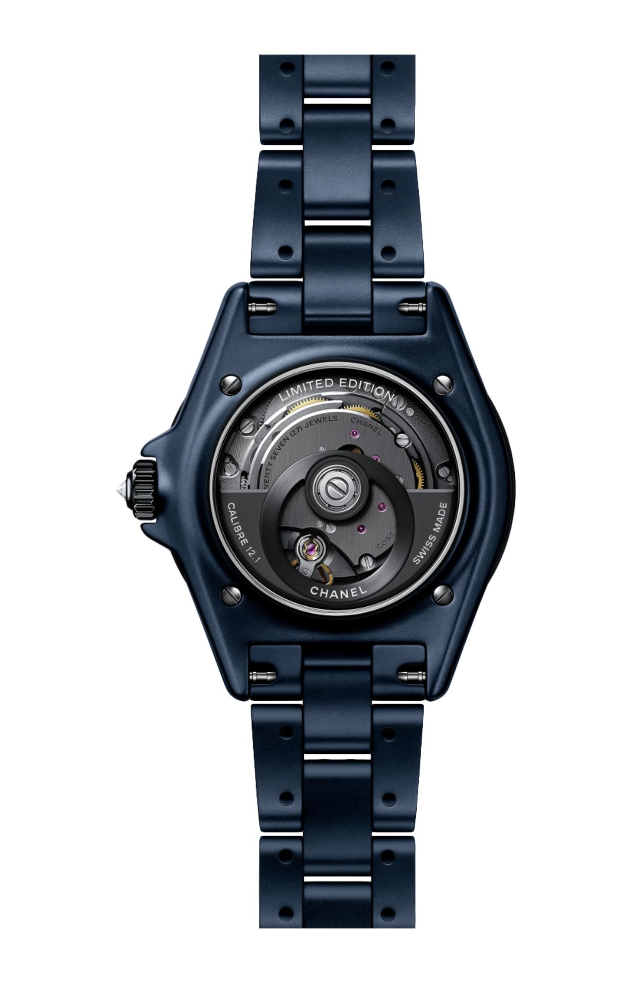 Ceramica blu opaca ad alta resistenza e acciaio con rivestimento nero, lunetta di zaffiri blu. Edizione limitata a 100 esemplari.