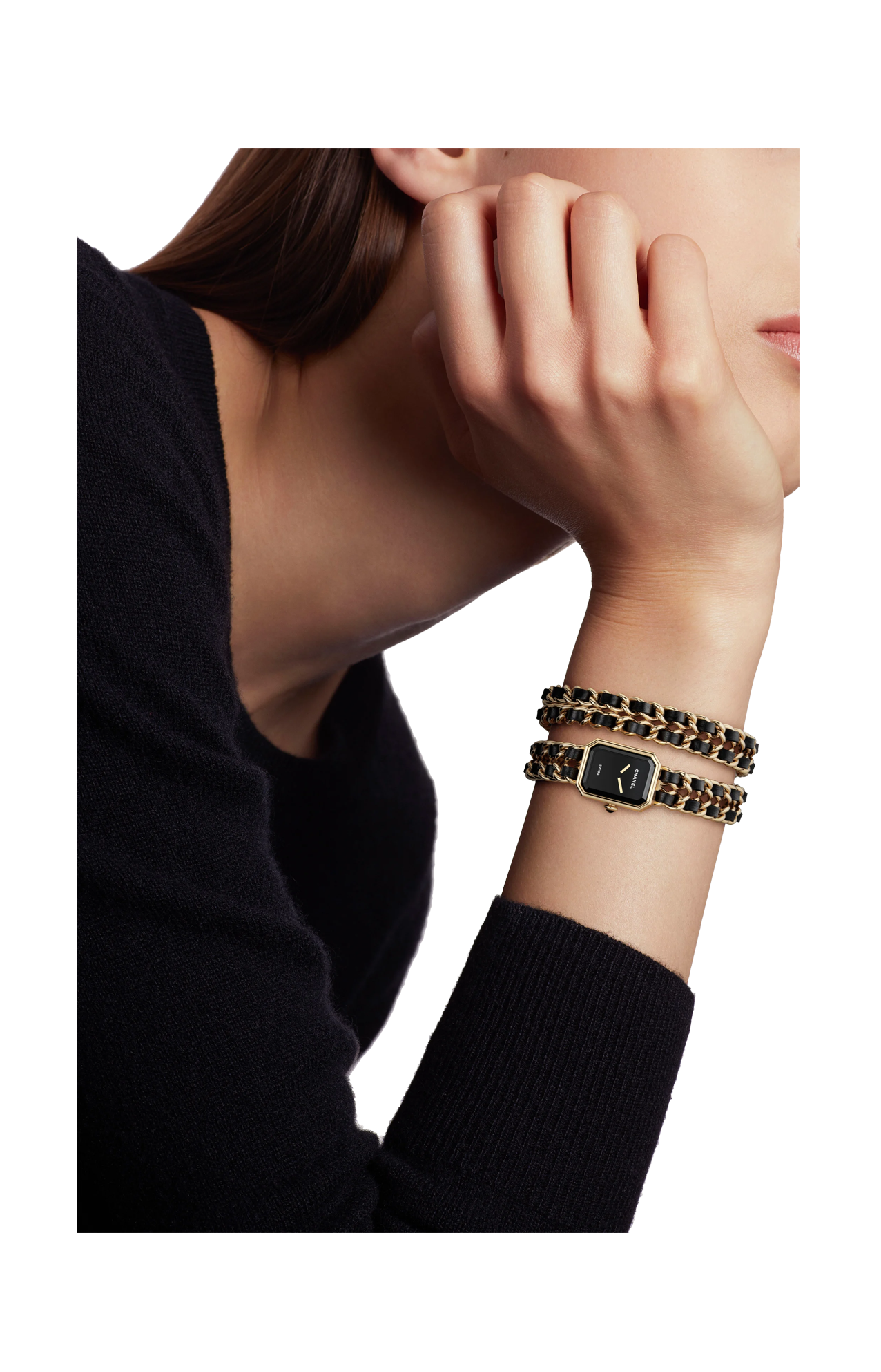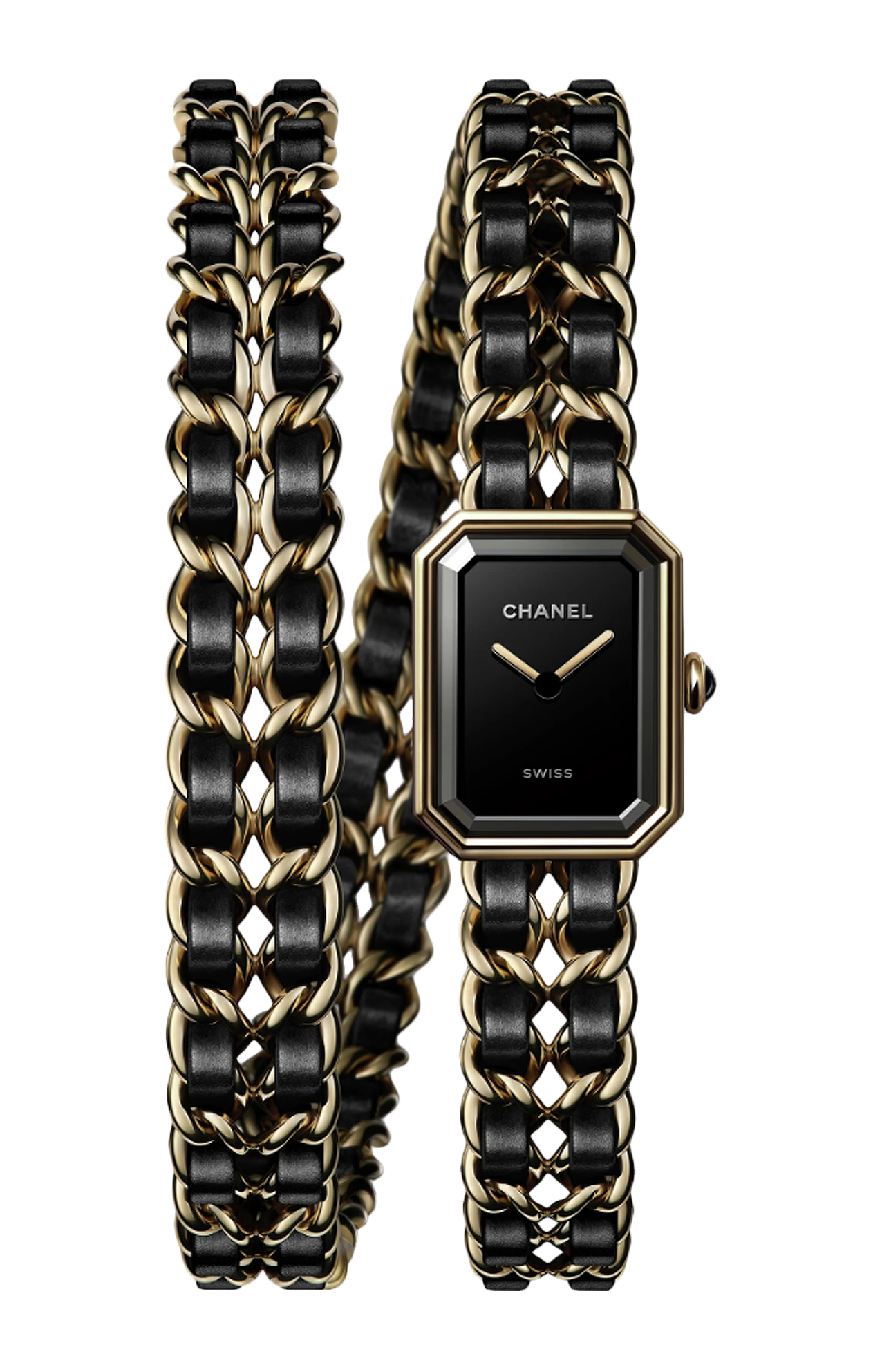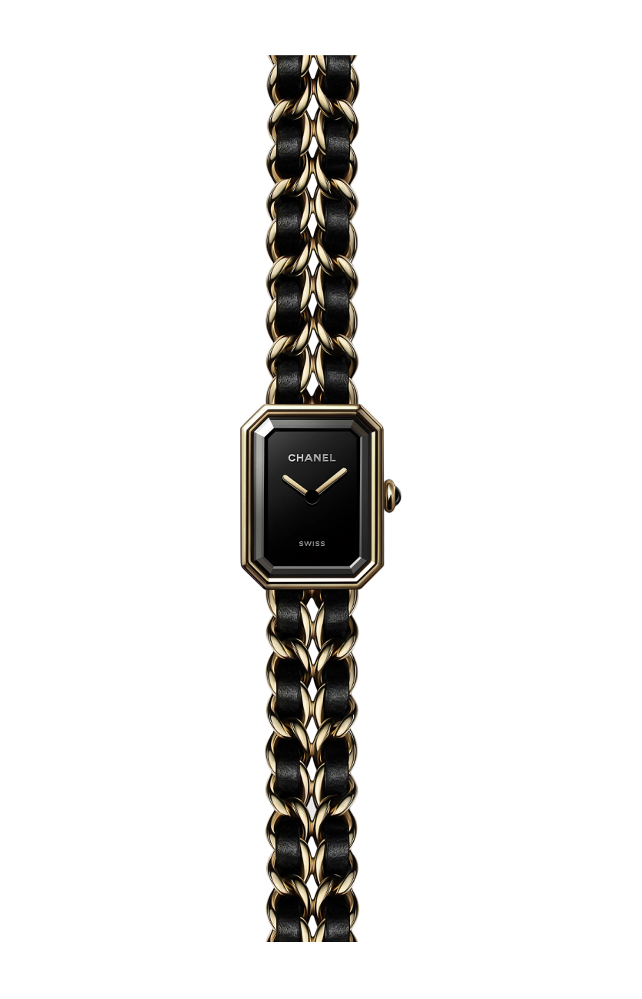 L’orologio Chanel Première Catena Iconica Doppio Giro Ref. H10332 è una creazione che fonde in un solo segnatempo l’eleganza, il glamour e l’identità estetica distintiva della maison: la cassa ottagonale, ispirata al tappo del flacone del profumo n° 5 e alla forma geometrica della Place Vendôme, è lavorata in acciaio placcato oro giallo (0,1 micron), sobrio e luminoso allo stesso tempo; il quadrante laccato nero aggiunge profondità e un contrasto raffinato con la cassa dorata, mentre la corona presenta un cabochon in onice che conferisce un tocco di carattere e raffinatezza. Il cinturino è doppio giro, con maglie a catena gourmette in acciaio placcato oro alternate a inserti di pelle nera intrecciata, richiamando il celebre motivo della catena delle borse iconiche di Chanel: un dettaglio che valorizza il design rendendolo indossabile come gioiello oltre che come strumento di misura del tempo. Mosso da un movimento al quarzo Swiss Made, ad alta precisione, questo modello è pensato per le donne che vogliono un accessorio di stile senza rinunciare alla comodità; l’impermeabilità è garantita fino a 30 metri, sufficiente per proteggerlo da umidità e spruzzi. Questo segnatempo è perfetto per chi desidera un orologio che diventi parte dell’identità personale: discreto nel quotidiano, distintivo nelle occasioni formali, capace di parlare del lusso francese contemporaneo con silenziosa eleganza.