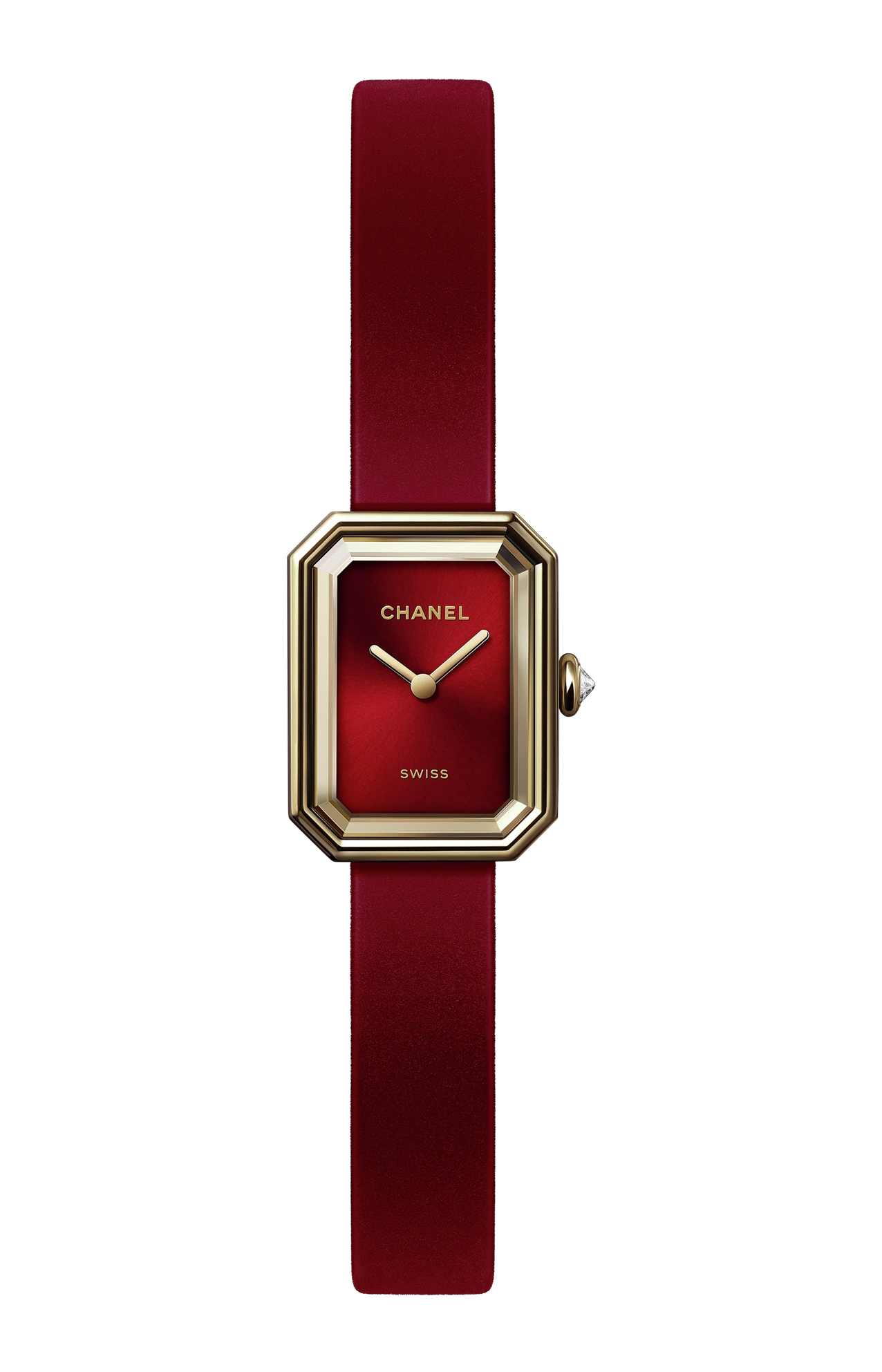 L'orologio CHANEL Première Nastro Rosso è un orologio da donna elegante e femminile che cattura lo spirito couture della Maison reinterpretando l’iconica silhouette Première con un tocco di colore e modernità. La cassa ottagonale, simbolo distintivo della collezione ispirata al tappo della fragranza Nº 5, è realizzata in oro giallo massiccio 18 K ed è incorniciata da un vetro zaffiro antigraffio che protegge il quadrante rosso laccato con finitura soleil, un elemento che dona profondità e fascino visivo. La corona in oro giallo è impreziosita da un diamante taglio brillante di circa 0,04 ct, aggiungendo un tocco di lusso discreto, mentre il cinturino in caucciù rosso con effetto velluto richiama l’estetica “ribbon”, evocando la sensazione di un nastro sartoriale che abbraccia il polso con stile e comfort. Il movimento è al quarzo di precisione svizzera, che assicura affidabilità e facilità d’uso quotidiano con le sole indicazioni di ore e minuti, combinando tradizione orologiera svizzera e design francese distintivo. Impermeabile fino a 30 metri, questo segnatempo unisce eleganza, colore e lusso moderno, ideale per chi desidera un accessorio raffinato capace di completare ogni outfit con una nota di personalità e charme.